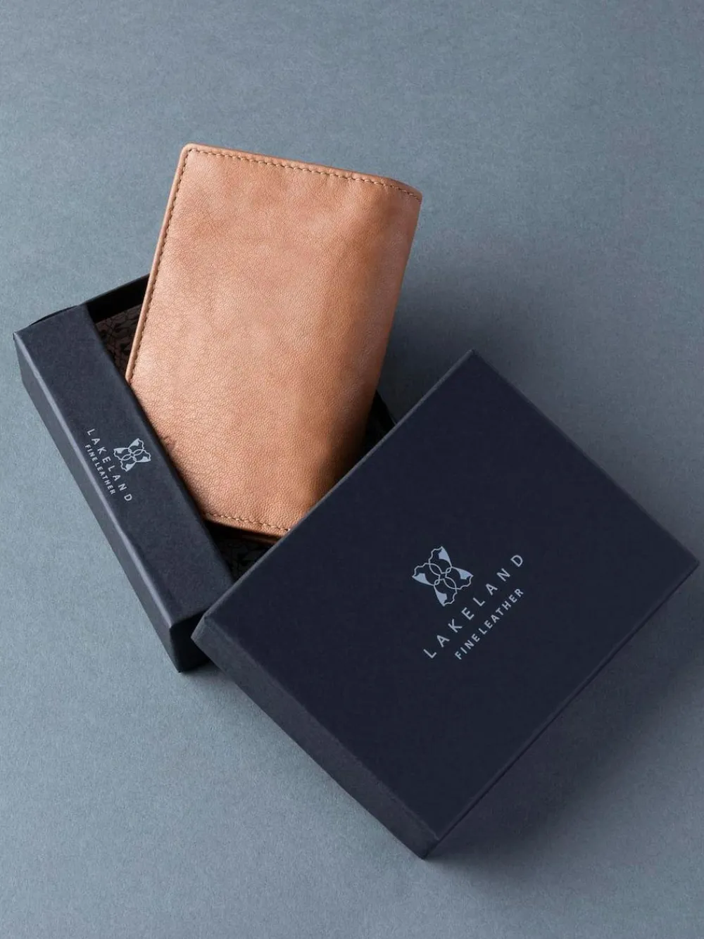 An RFID protected, premium leather wallet from Lakeland Leather. Expertly crafted in soft leather, this wallet is a timeless investment to keep your personal possessions secure. Featuring various card slots and slip pockets this wallet is opened with a classic trifold design and presented in a branded box.Due to the natural characteristics of the leather, the finish may vary slightly from one product to another. Height 8cm Width 12cm Depth 2cm 100% Leather.