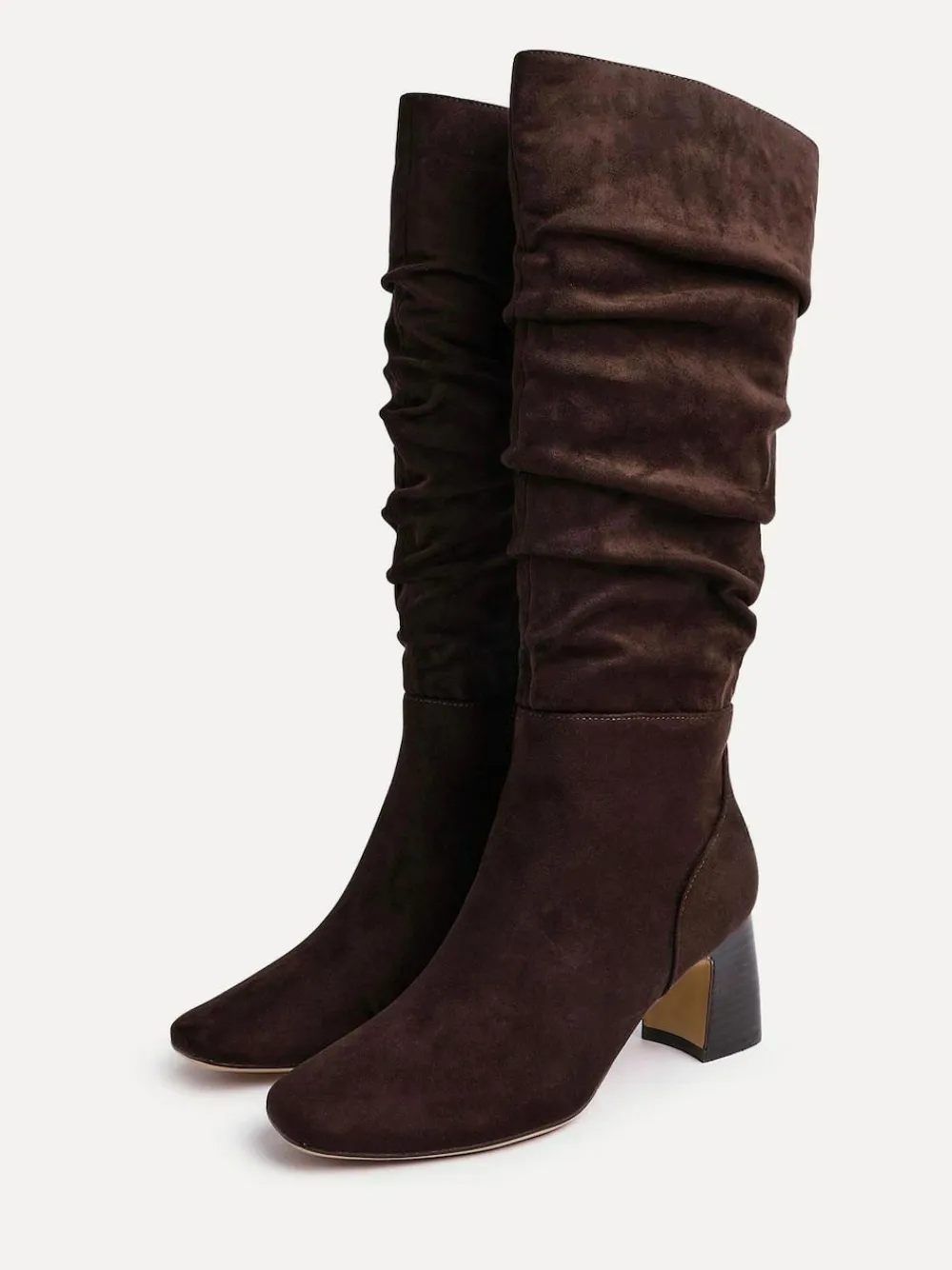 Our Alpine high leg boots are the perfect finishing touch to any outfit. Featuring a square toe, ruched detailing, and a convenient half zip, they’re effortlessly stylish and easy to wear. Set on a stacked block heel with a cushioned insole and faux fur lining, keeping you warm and comfortable. Boot Length: 36.5cm Heel height 6.5cm. Upper – 100% Other fibres, Lining. and Sock – 100% Other fibres. Sole – 100% Rubber.