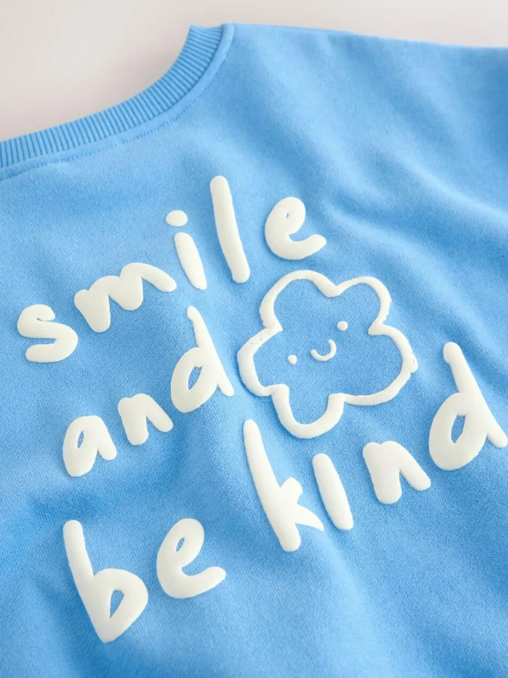 This cheerful Blue Flower Crew Neck Sweatshirt is a comfortable and kind addition to their casual wear. Featuring a lovely flower patch pocket and an engaging ‘Smile and Be Kind’ slogan on the back, this top is perfect for everyday play. Crew neck Flower patch pocket ‘Smile and Be Kind’ slogan 85% Cotton, 15% Recycled polyester.