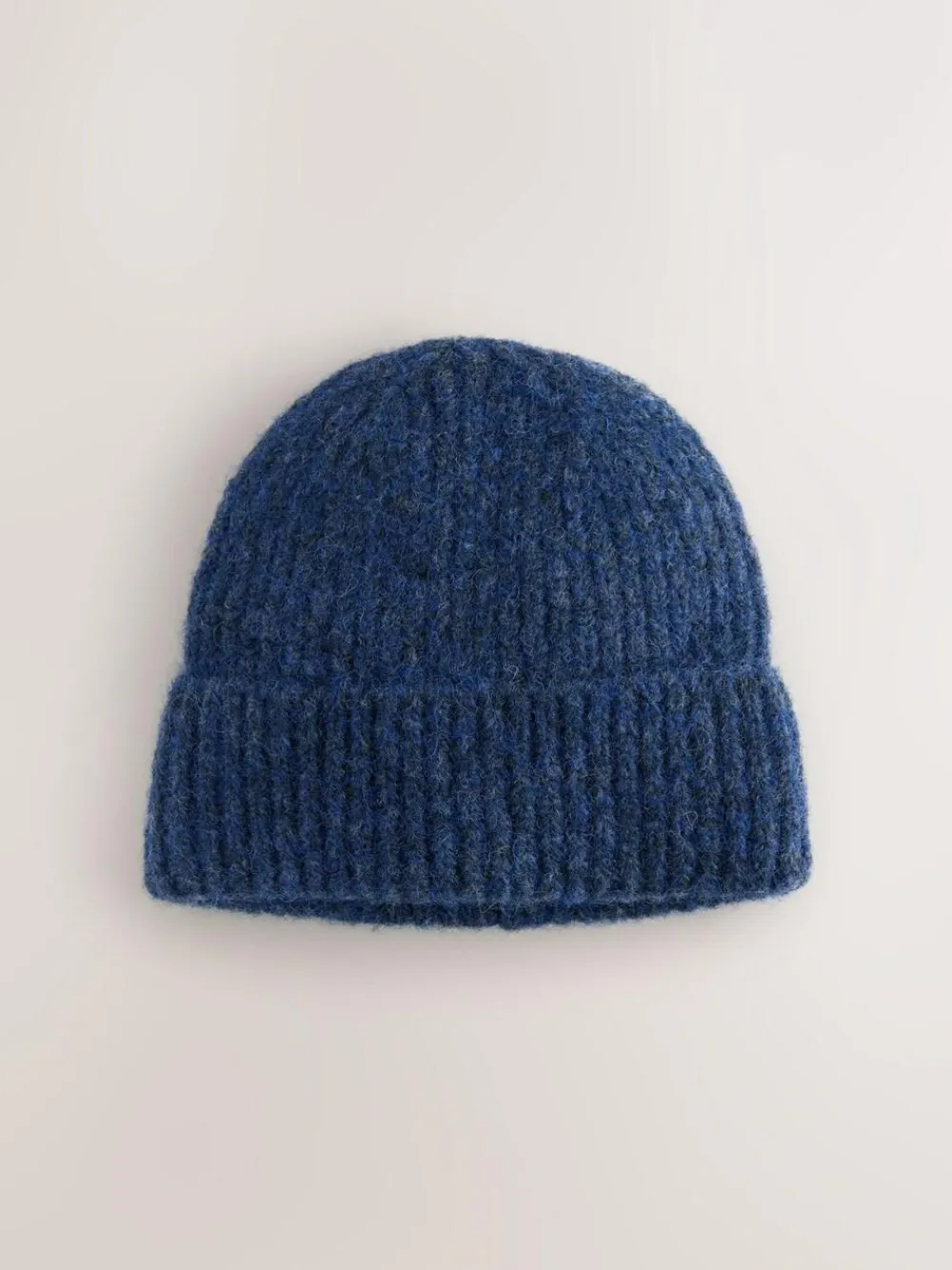 Discount Next Navy Ribbed Beanie Containing Wool Hat