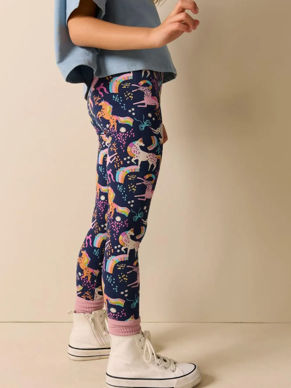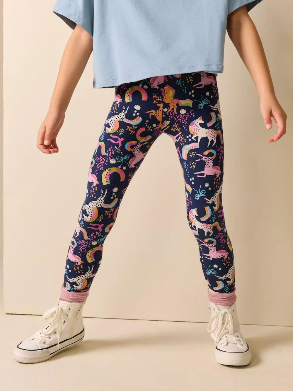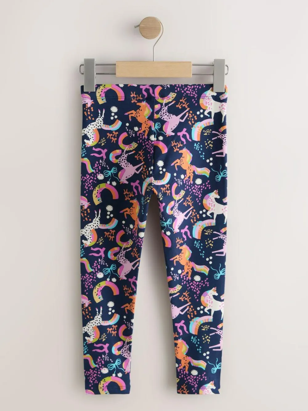 Brighten up your casual looks with these vibrant Navy Unicorn Leggings. Crafted from soft cotton fabric that provides 4 way stretch, they ensure exceptional comfort and movement for all-day wear. The classic print and quality comfort fit make these leggings a versatile and colourful staple for layering or wearing on their own. 4 way stretch soft cotton fabric Quality comfort fit Vibrant print 92% Cotton, 8% Elastane.