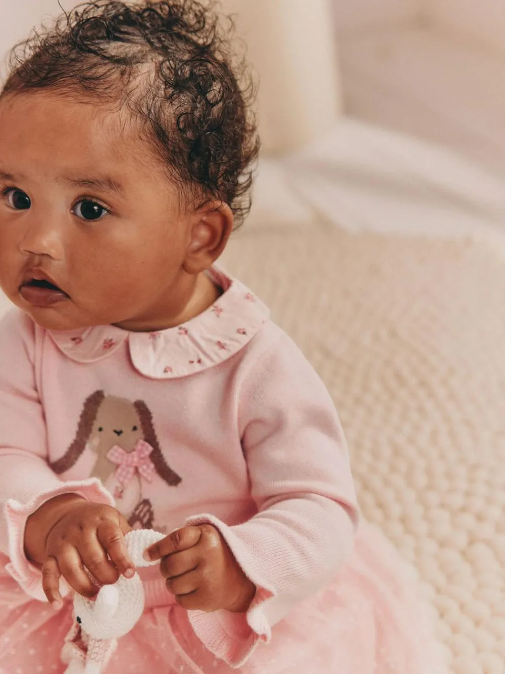 Discount Next Pink Bunny Baby Knitted Twofer Dress (0mths-2yrs)