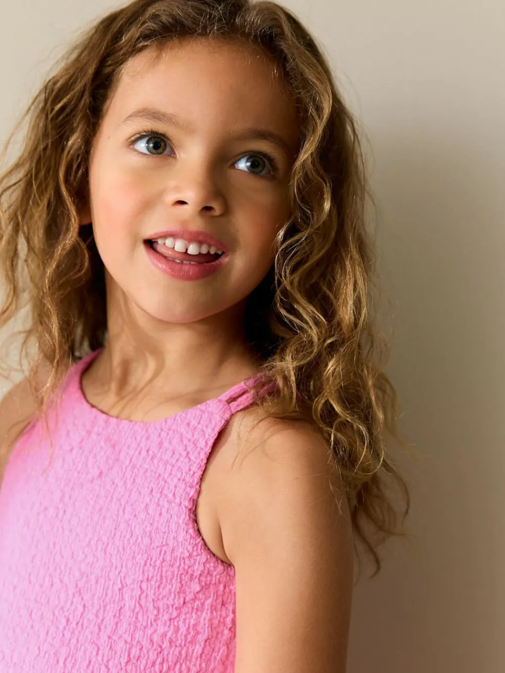 Make her summer wardrobe vibrant with this refreshing Strappy Crinkle Summer Dress. This cute strappy sundress is made from a beautifully soft textured fabric that ensures comfort and a charming look. Perfect for summer days and warm weather adventures. Cute strappy sundress Soft textured fabric Perfect for summer days Crinkle finish Main 98% Recycled polyester, 2% Elastane. Lining 100% Cotton.