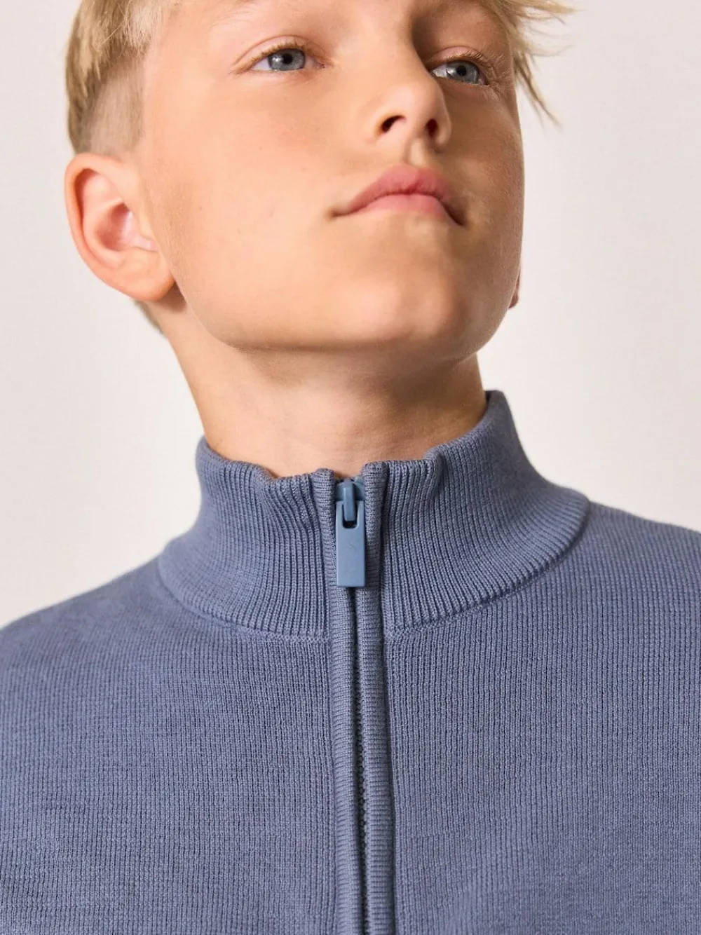 Stylish and comfortable, this blue knitted jumper is a versatile wardrobe staple. The Milano stitch and quarter zip neck add a touch of sophistication to a casual look. An essential layering piece for school days or a comfortable weekend style. Milano stitch Knitted Quarter-zip neck 100% Cotton.