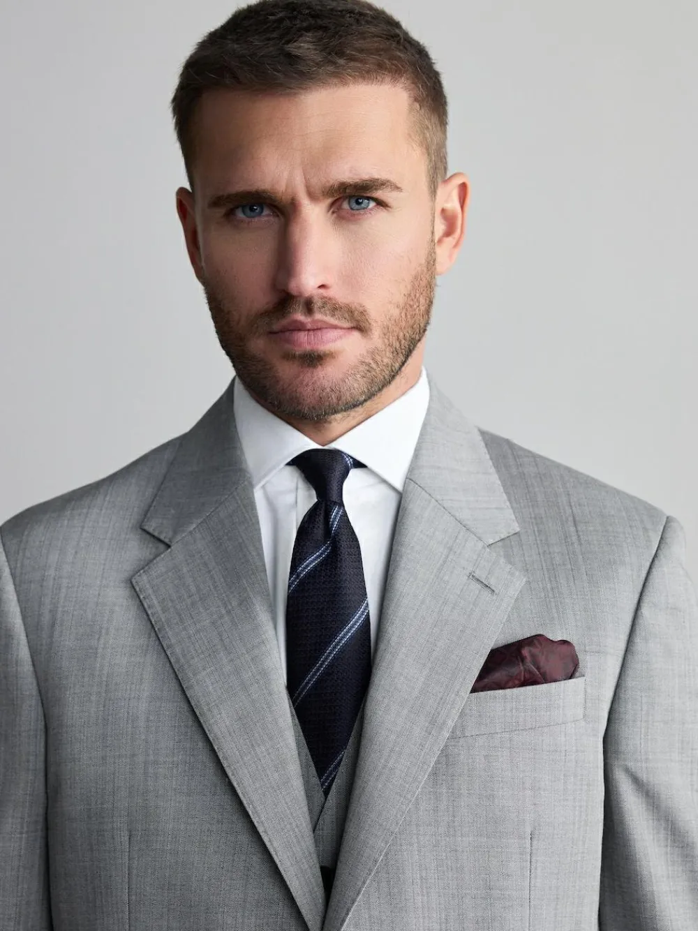 As part of our Signature range, this premium grey jacket is made with wool from the Italian Nova Fides mill, cut to a regular fit with a lapel collar, a single-breasted front and a button-up fastening. The jacket is finished with a comfortable lining, flap pockets and a pull-out chest pocket.Nova FidesSince the 1960s, Nova Fides has been based in the Prato textile district creating fine weaves and fabrics for Men’s clothing. Regular fit Wool-blend Italian fabrics from Nova Fides mill Single breasted Lapel collar Flap pockets Pull-out pocket square Main 100% Wool. Lining 57% Polyester, 43% Viscose.