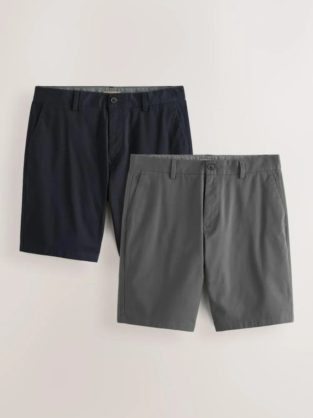Discount Next Straight Fit Stretch Chino Shorts 2 Pack Navy/Charcoal