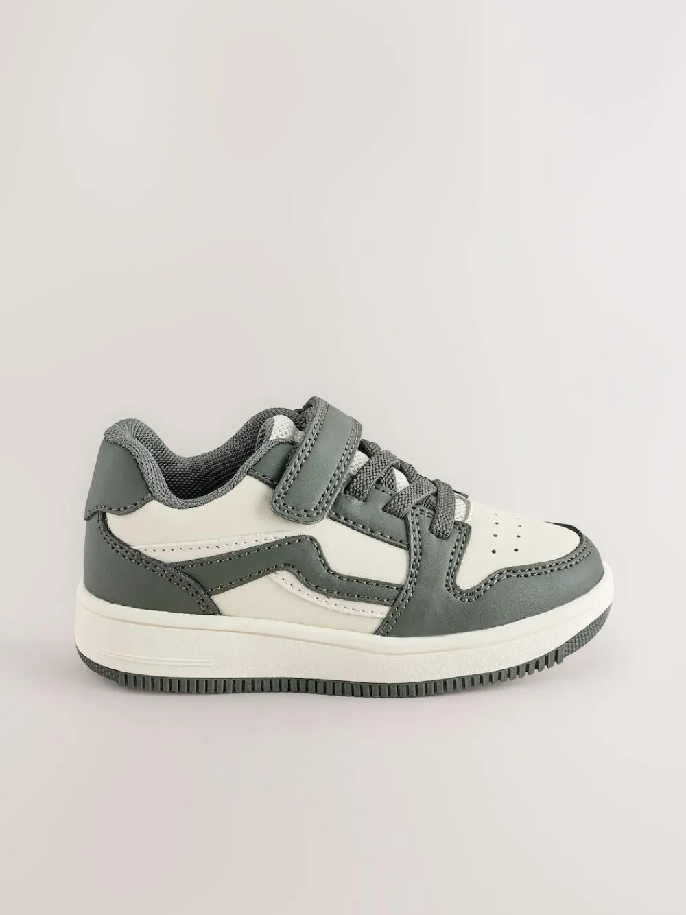 These fun and retro-look trainers have a panelled faux leather upper with a perforated toe box and elasticated laces, alongside a touch-fastened strap for a secure fit. A textile lining keeps things comfortable, finished with a rubber outsole. Faux leather upper Elasticated waistband Touch-fastened strap Perforated toe box Textile lining Rubber outsole View the How to Measure and Fit at Home Guide Upper – Other Materials, Textile, Lining & Sock – Textile, Sole – Other Materials.