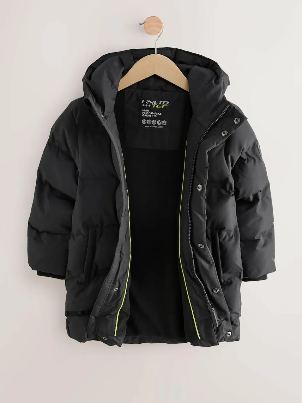 Next Black Shower Resistant Longline Padded Coat (3-16yrs)^ Jackets & Coats|Snowsuits & Coats