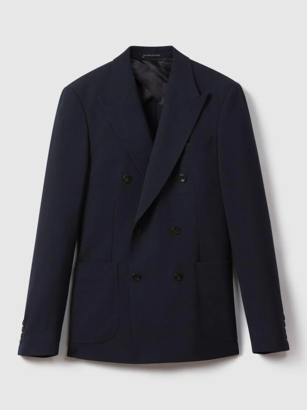 Discount Reiss Navy Belmont Db Double-Breasted Textured Suit Blazer Tailored-Fit With Wool