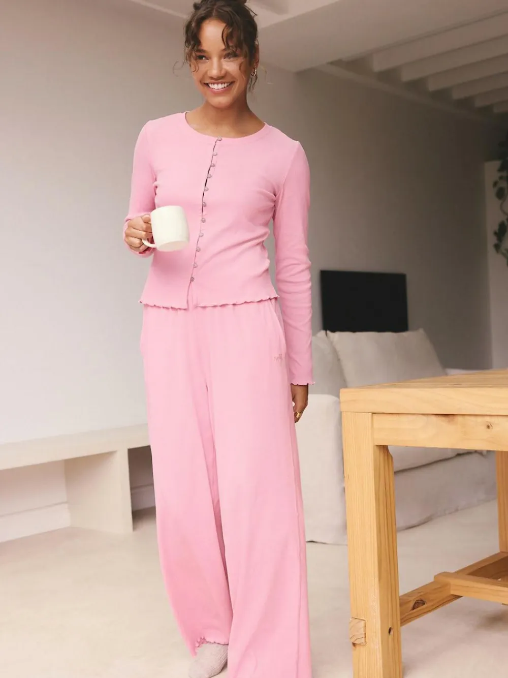 Discount self. Ribbed Button Through Pyjamas Bright Pink