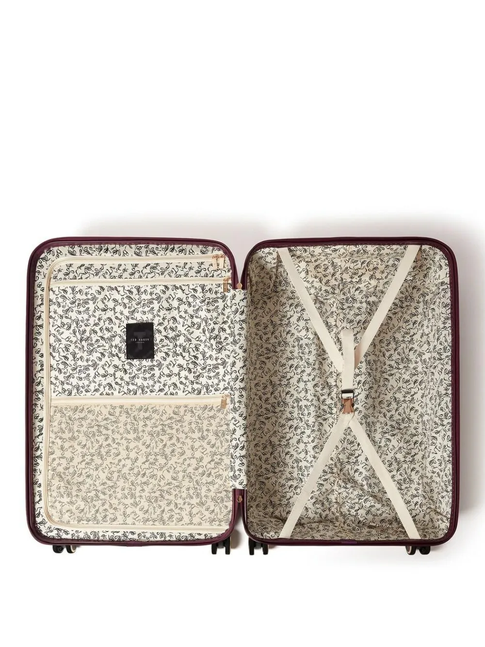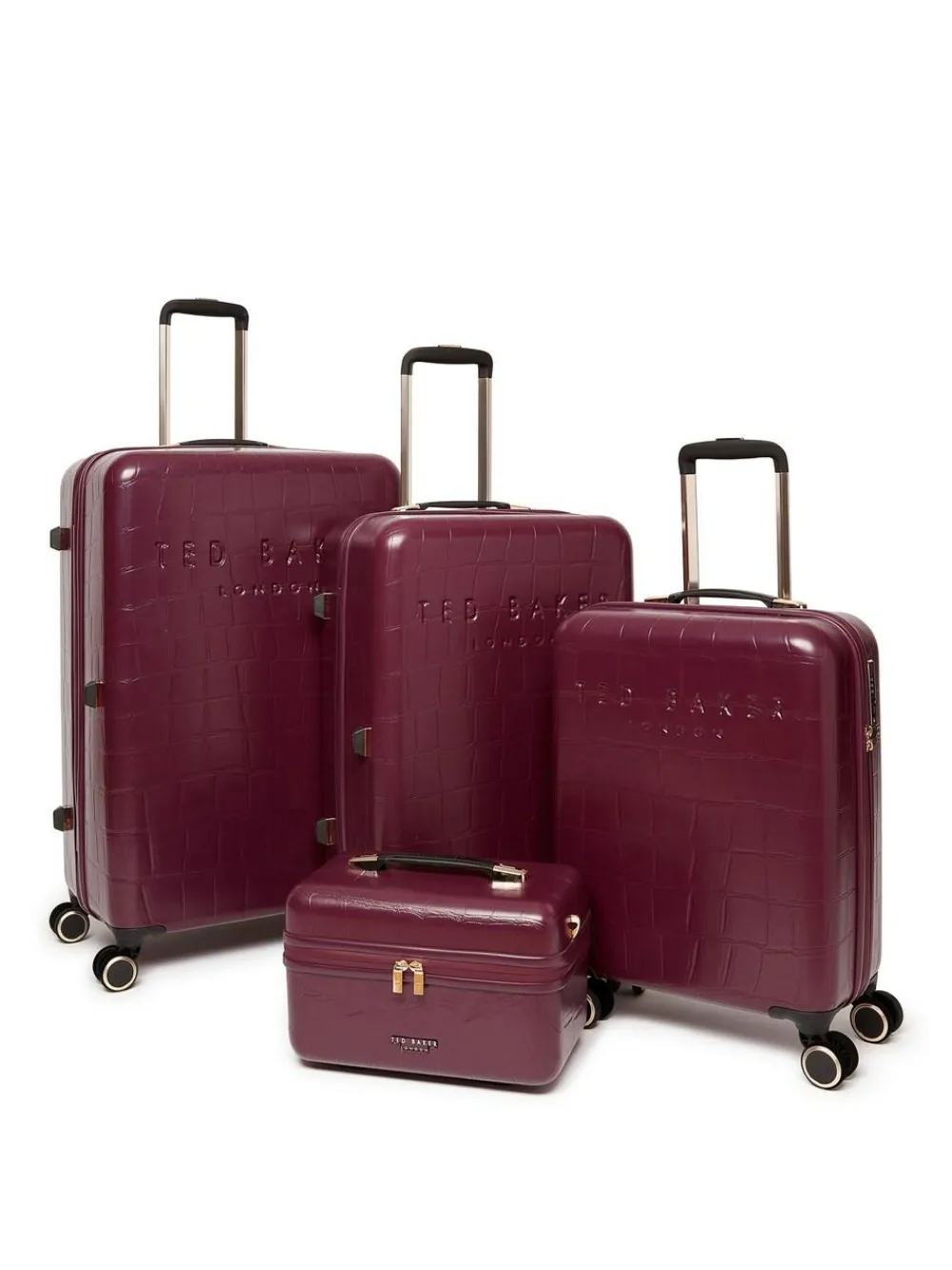 Inspired by Ted Baker’s Icon Bag, Icon Case brings statement design to every journey. With a croc embossed finish, bold branding, and a refined silhouette, Icon Case is designed for the traveller looking to stand out. This beautifully coordinated 4-piece collection includes a Vanity Case, Cabin, Medium, and Large suitcase. Details include a signature print lining with an organised interior to make packing easy, an embedded TSA lock, and double wheels with branded wheel caps. Height 68cm Width 45cm Depth 28cm 100% ABS (Acrylonitrile Butadiene Styrene).