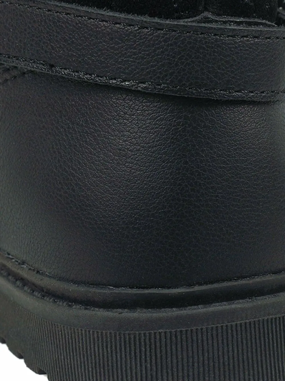 Toe Zone Lumi Girls Black Leather & Suede Fur Boot are packed with features to ensure comfort, durability and style, these shoes are designed to be extraordinary. Here s what makes them special: Scuff Resistant: Durable material that keeps the shoes looking new for longer. Faux Fur Collar: Provides extra warmth and comfort while adding a stylish touch. Heart Buckle: Offers adjustability and a cute decorative element. Suede Leather Upper: Ensures durability, comfort, and breathability. Heart Print: Adds playful, visually appealing design for self-expression. Side Zip: Easy to adjust for a secure fit. Non-Slip: Ensures stability on various surfaces. Non-Marking: Prevents marks on floors, keeping them clean. Outsole: Durable and provides excellent traction. Textile Linings: Keeps the shoes fresher for longer. Material Composition: Upper: Leather Suede Linings: Additional Features: Check out the LEFT and RIGHT print on the insocks super helpful for children learning to put their shoes on correctly. We recommend using our printable fitting guide unique to ToeZone before making a purchase to ensure the perfect fit. Main – 100% Leather. Lining – 100% Suede, Lining. and Sock – 100% Textile. Sock – 100% Other fibres.