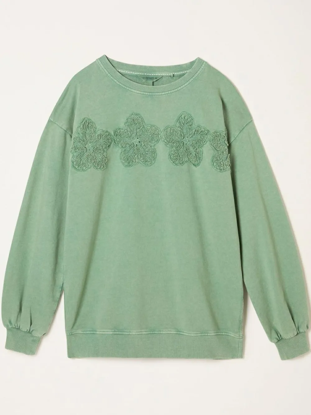 The Alex crew sweat features a relaxed fit with floral placement detailing across the front for a subtle lift. Made from a comfy cotton fabric with a classic crew neckline, it’s perfect for layering over jeans or leggings – whether you’re heading out or winding down. Machine washable. Main 100% Cotton. Rib 96% Cotton, 4% Elastane. Embroidery 100% Cotton.