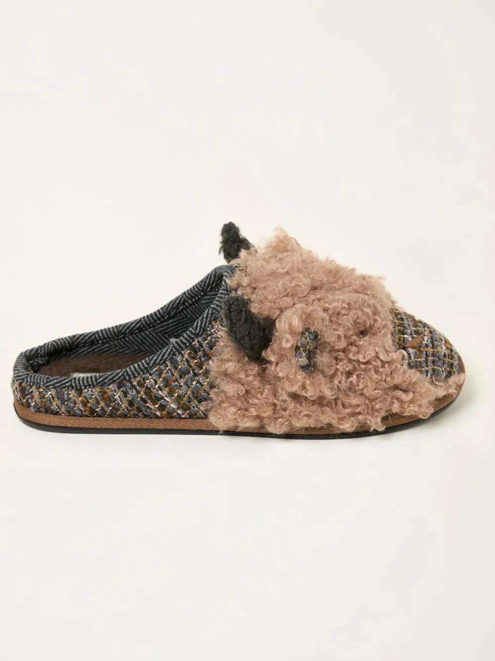 Meet Hamish – the Highland cow bringing charm and comfort to your downtime. These novelty slippers feature a fun cow design with soft, fluffy textures and a cosy lining to keep your feet warm and snug. Perfect for lounging around or adding a bit of character to your loungewear, Hamish is here to make every step a little more cheerful. Upper – Textile, Lining & Sock – Textile, Sole – Other Materials, Textile.