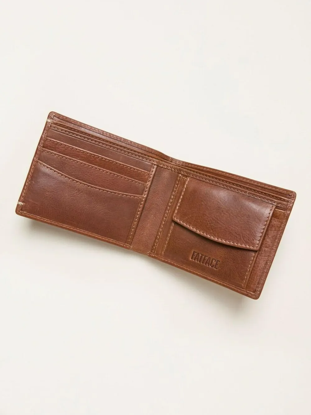Fat Face FatFace Tan Brown Corner Stitch Detail Leather Wallet^ Wallets