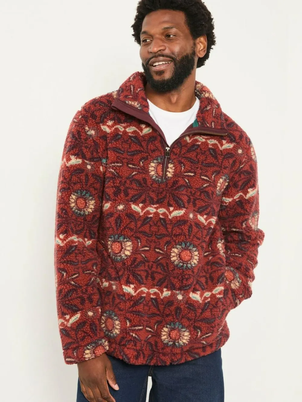 Add a subtle statement to your cold-weather wardrobe with the willow floral printed half-neck fleece. Featuring a nature-inspired print and a soft, brushed interior, it combines warmth with standout style. The half-zip neckline makes it easy to layer – ideal for weekend outings, outdoor walks, or laid-back days in. This product is included in our collaboration with the V&A. Inspired by designs held in the V&A’s archives and reimagined by our in-house designers, the V&A x FatFace range celebrates British design, handcrafted techniques and the beauty of the natural world. Machine washable. Main 100% Recycled polyester. Trim 100% Cotton.