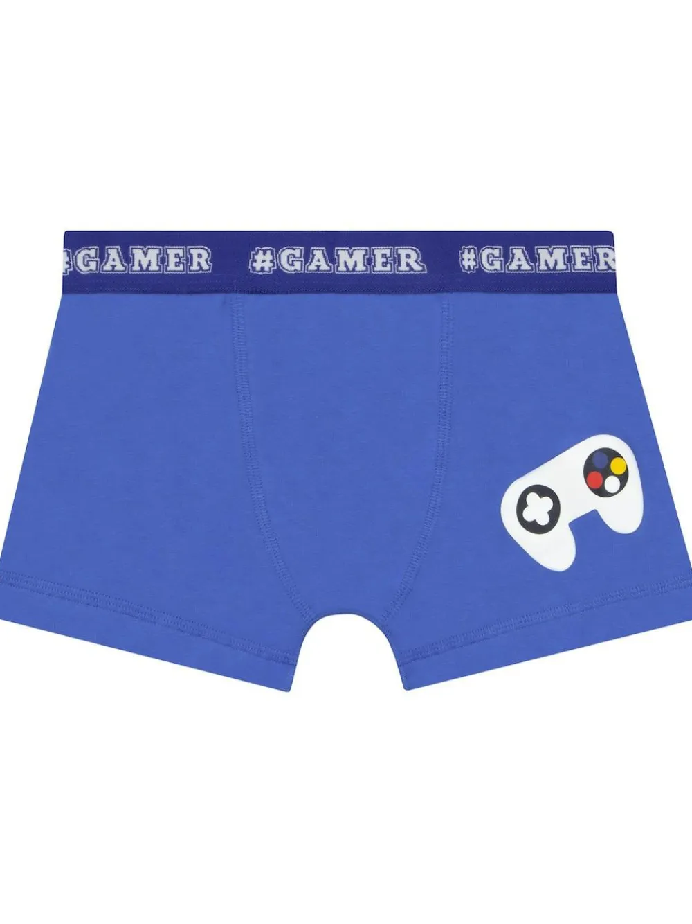 Level up his everyday essentials with this 3 pack of boys gaming boxers from Harry Bear. Packed with playful style, these cotton trunks feature bold multicolour game controller prints. Each pair comes with a striking ‘#GAMER’ waistband for a cool finishing touch he’ll love. The set includes navy kids boxers with an all over controller print, a bright red pair with three controller graphics, and a blue pair with a single standout design. Designed for comfort and fun, these boys trunks are perfect for active days, chilled gaming sessions, or everyday wear. Whether you call them boys pants or kids boxers, this multipack makes dressing easy and exciting. Ideal as Harry Bear gifts for children or playful gifts for boys, these comfy and cool trunks are a real game changer for any collection. Machine washable. 100% Cotton.