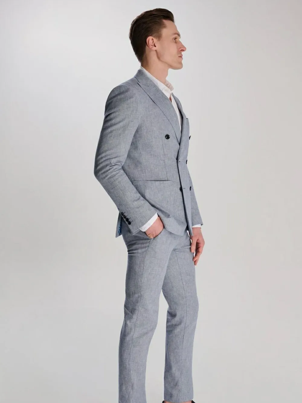 Harry Brown Giacomo Cotton Linen Double Breasted Suit Jacket^ Blue Suits|Suits & Tuxedos