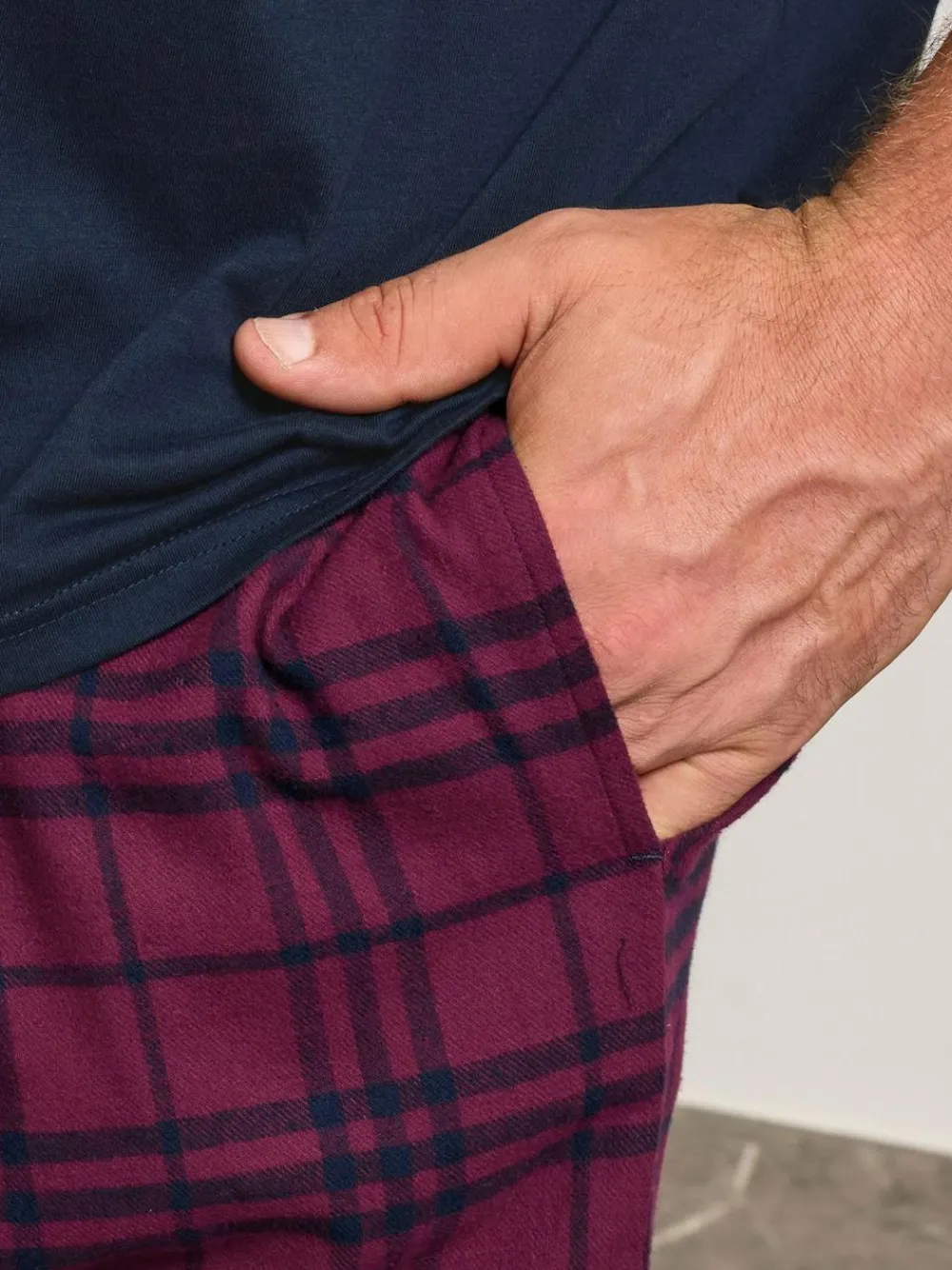 Hot BadRhino Big & Tall Checked T-Shirt amd Pyjama Bottoms Set Blue