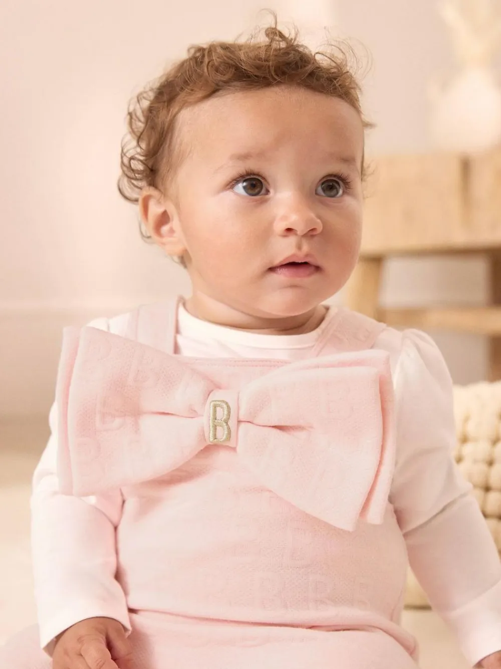 Hot Baker by Ted Baker Pink Jacquard Bow Dungarees & T-Shirt Set