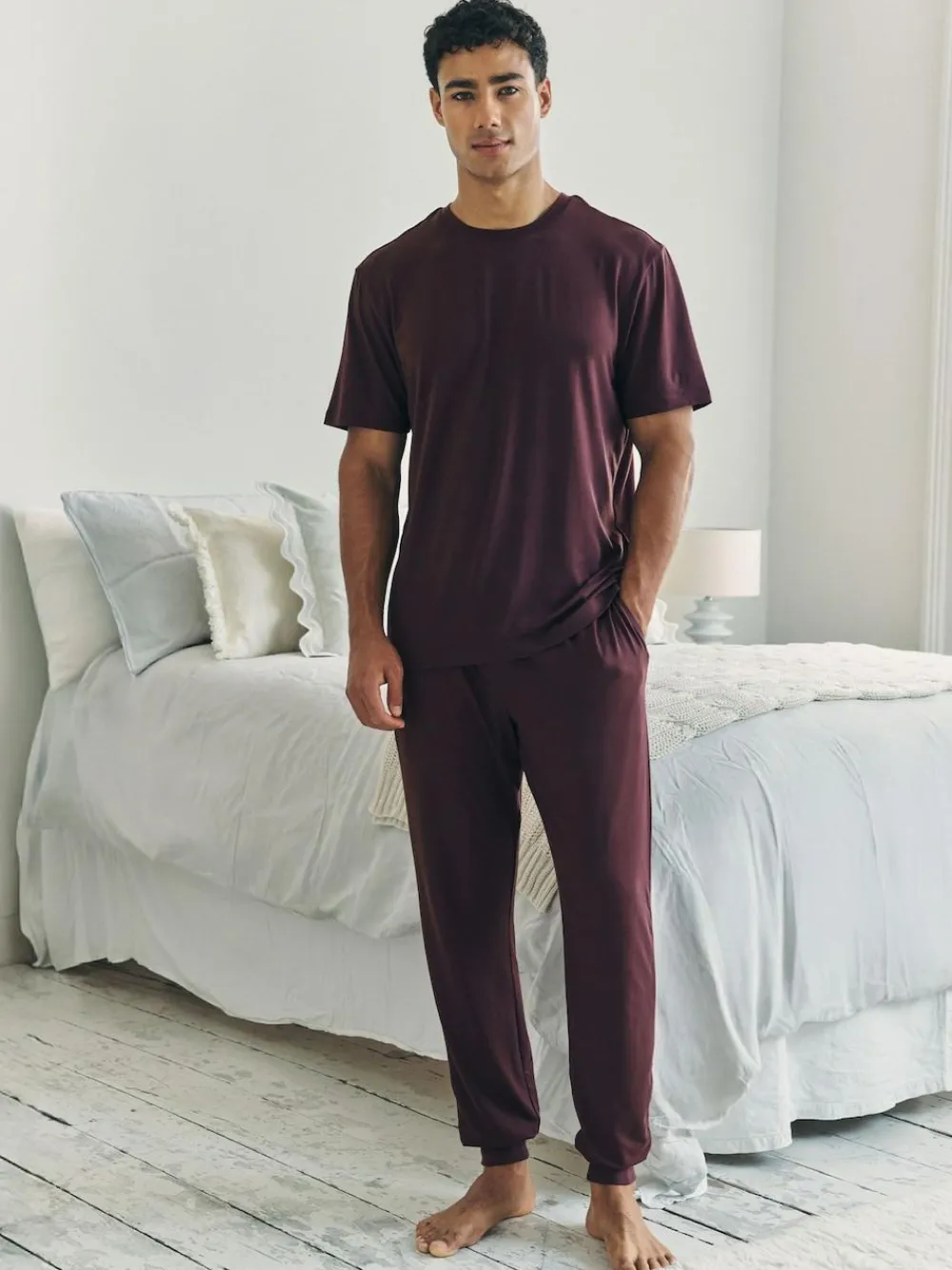 Your essential pyjama, this easy to wear crew neck T-Shirt and long cuffed bottoms pj set is made from our signature fibre knit jersey, a super soft yet durable fabric. Machine washable. 95% Polyester, 5% Elastane.