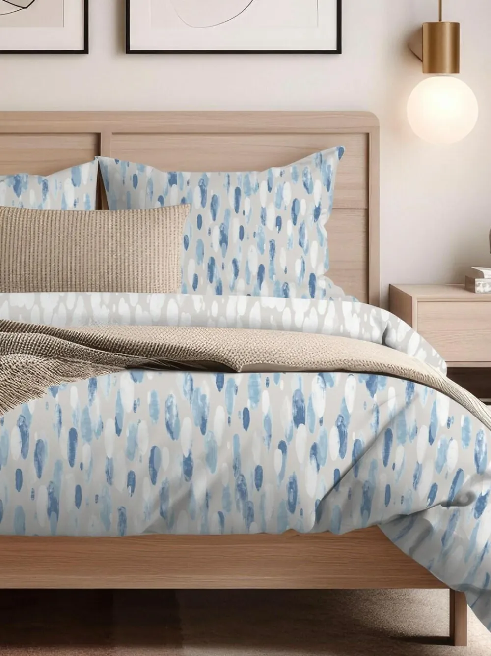 Our ever-popular Rayne design is back in a timeless shade of cool blue. The beautiful mark-making pattern is inspired by Italian glassware and now comes in four fabulous colourways. Produced using our easy-care polycotton blended fabric, which is delightfully simple and easy to launder. Effortlessly stylish & affordable. Single sets include 1 pillowcase, double, king and super king sets include 2 pillowcases. Machine washable. 52% Polyester,48% Cotton