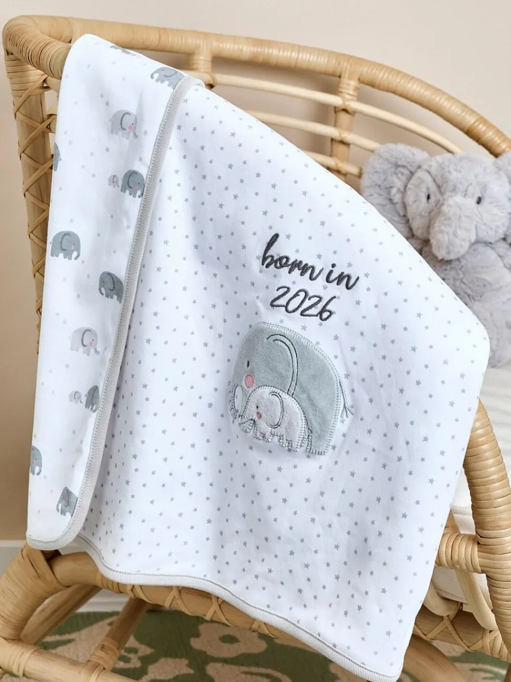 The Born In 2026 Jersey Shawl is a perfect present for a newborn baby. It’s supersoft because it’s made from pure cotton. Flip it over and get two fabulously different styles. The adorable design on it makes it even more special, and it’s really gentle on sensitive skin. It’s just great for keeping babies cosy whether they’re at home or in their stroller. Supersoft touch. Ideal gift. 90 x 70cm. Machine washable.