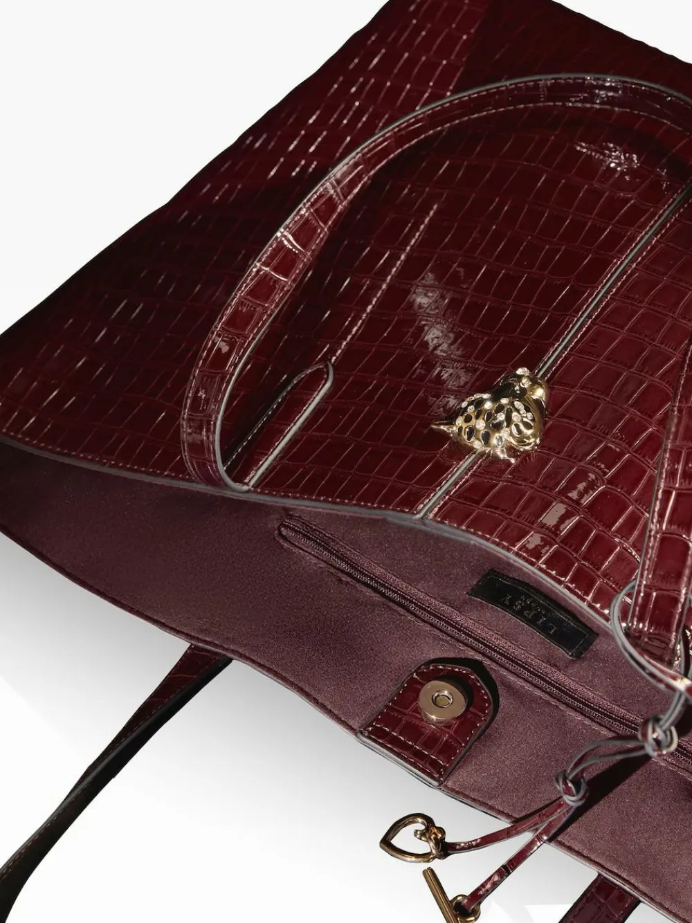 Hot Lipsy Croc Effect Shopper Tote Bag Burgundy Red