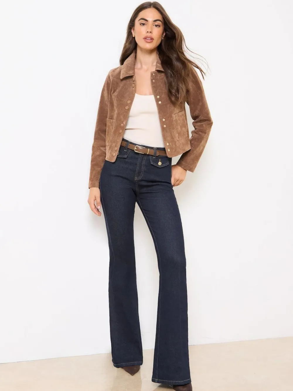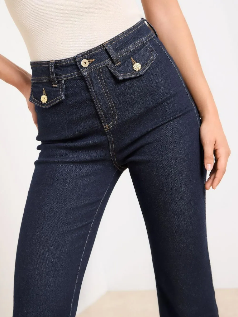 Hot Lipsy Glam Flare Leg Jeans Dark Blue Wash