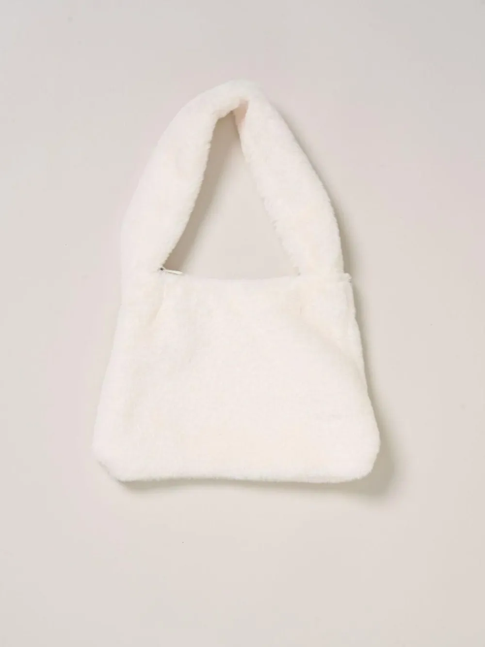 Hot Miss Faux Fur White Gilet Bag Rib Top and Skirt Set