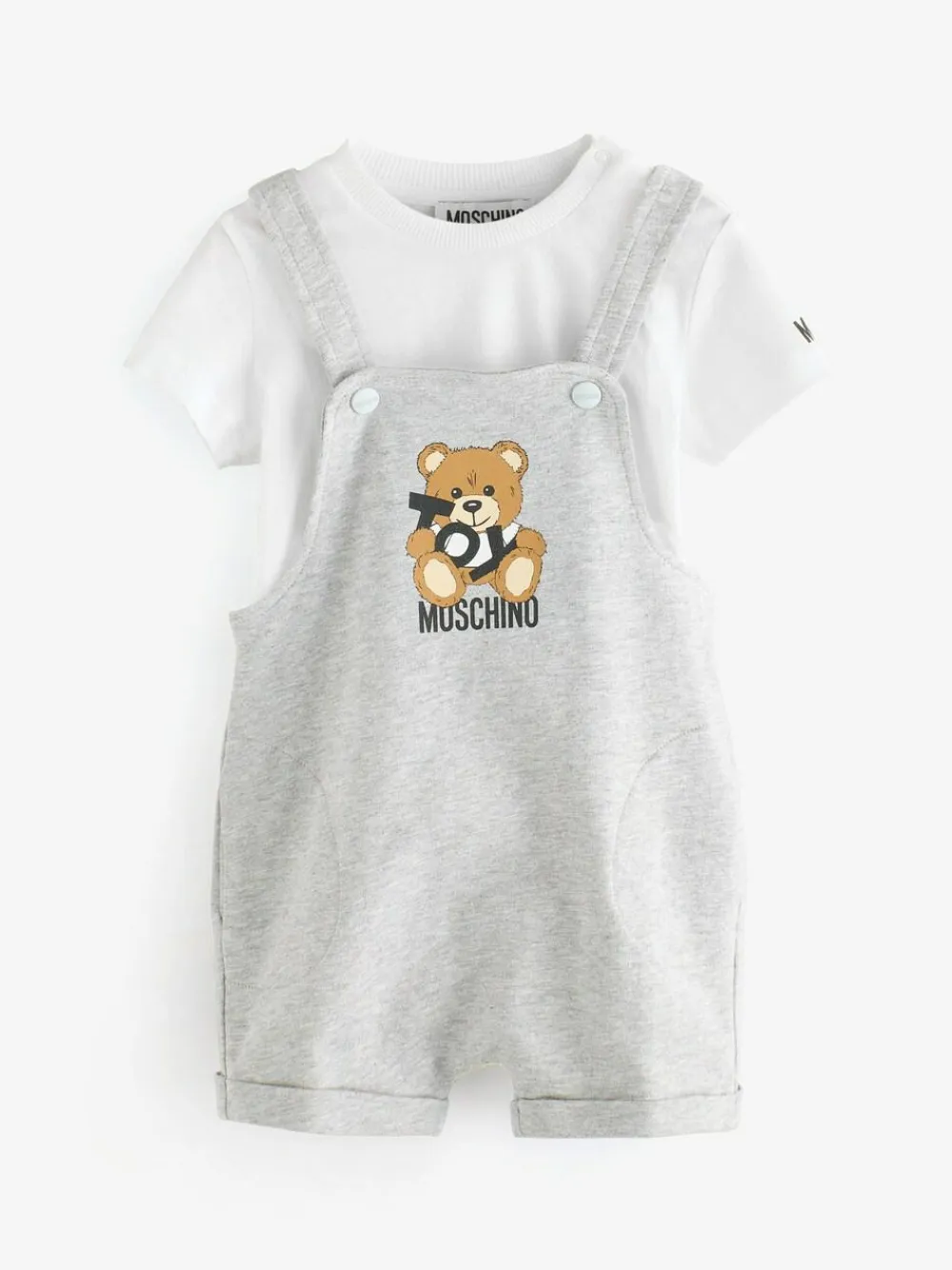 Be the first to review “Hot Moschino Grey Baby Logo Short Sleeve T-Shirt and Dungarees Set” Cancel reply