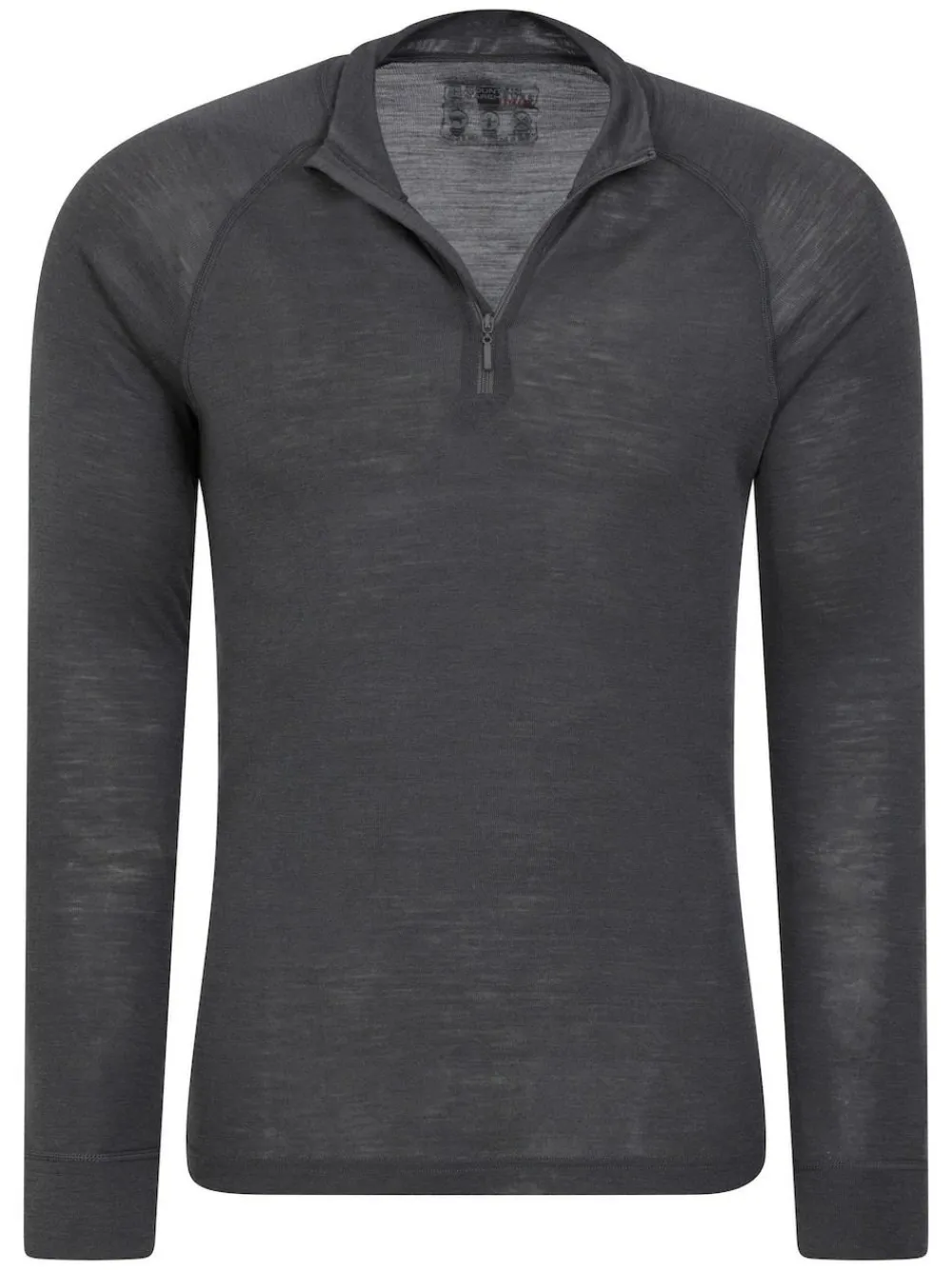 Hot Mountain Warehouse Grey Mens Merino II Long Sleeve Quarter Zip Thermal Top