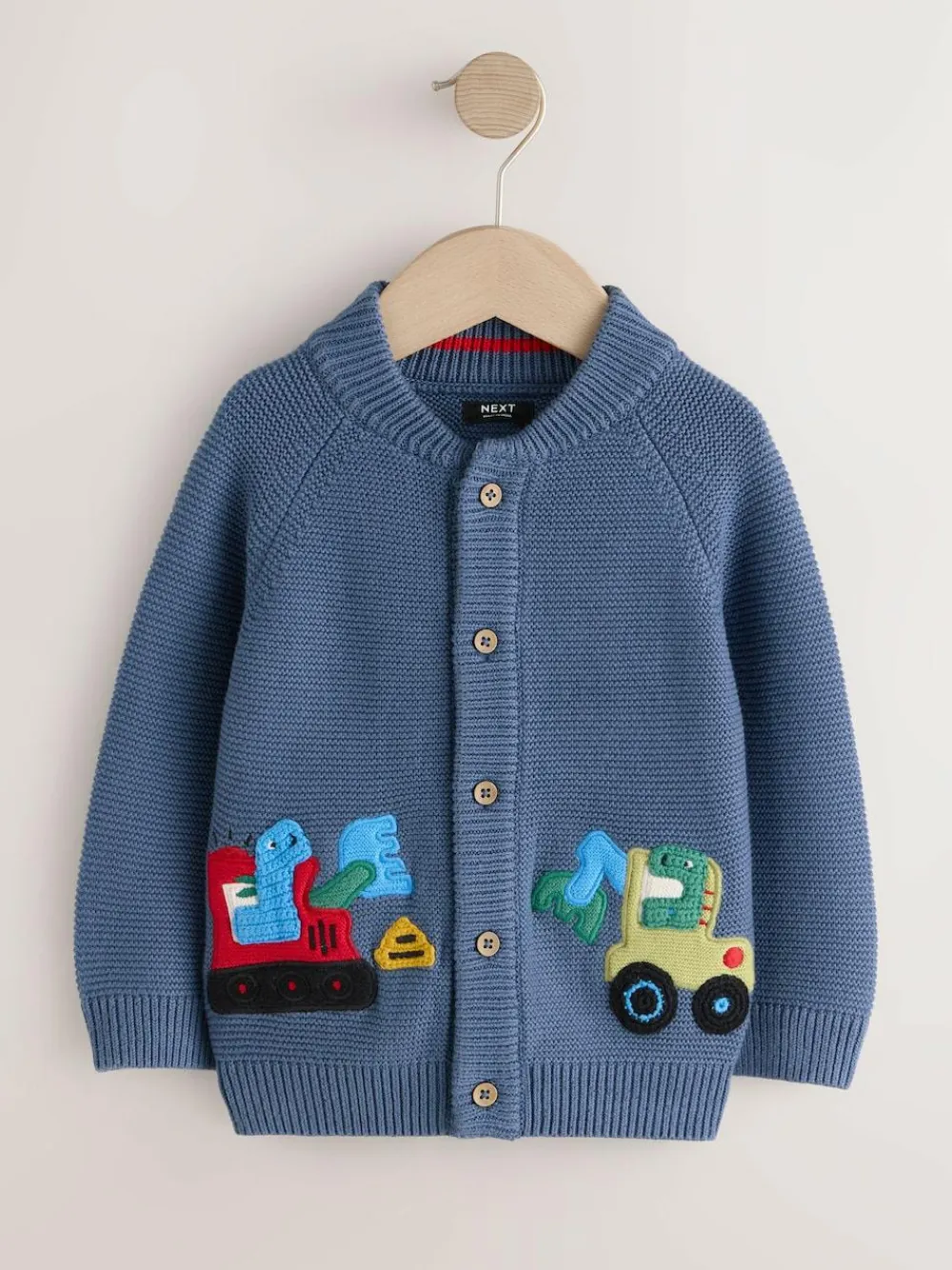 Hot Next Blue Dinosaur Character Cardigan (3mths-7yrs)