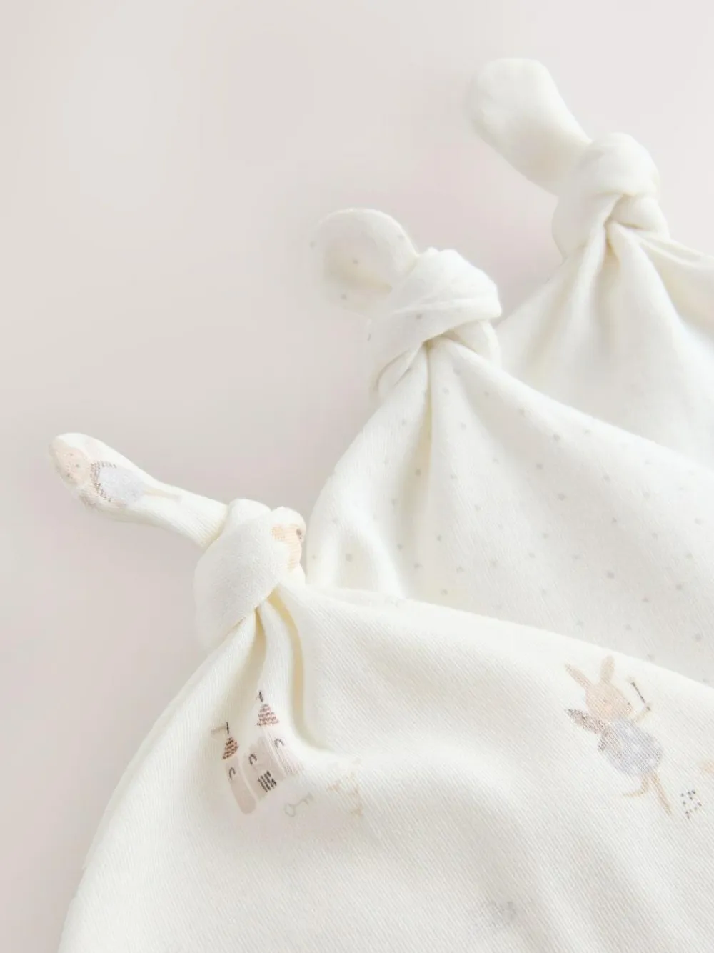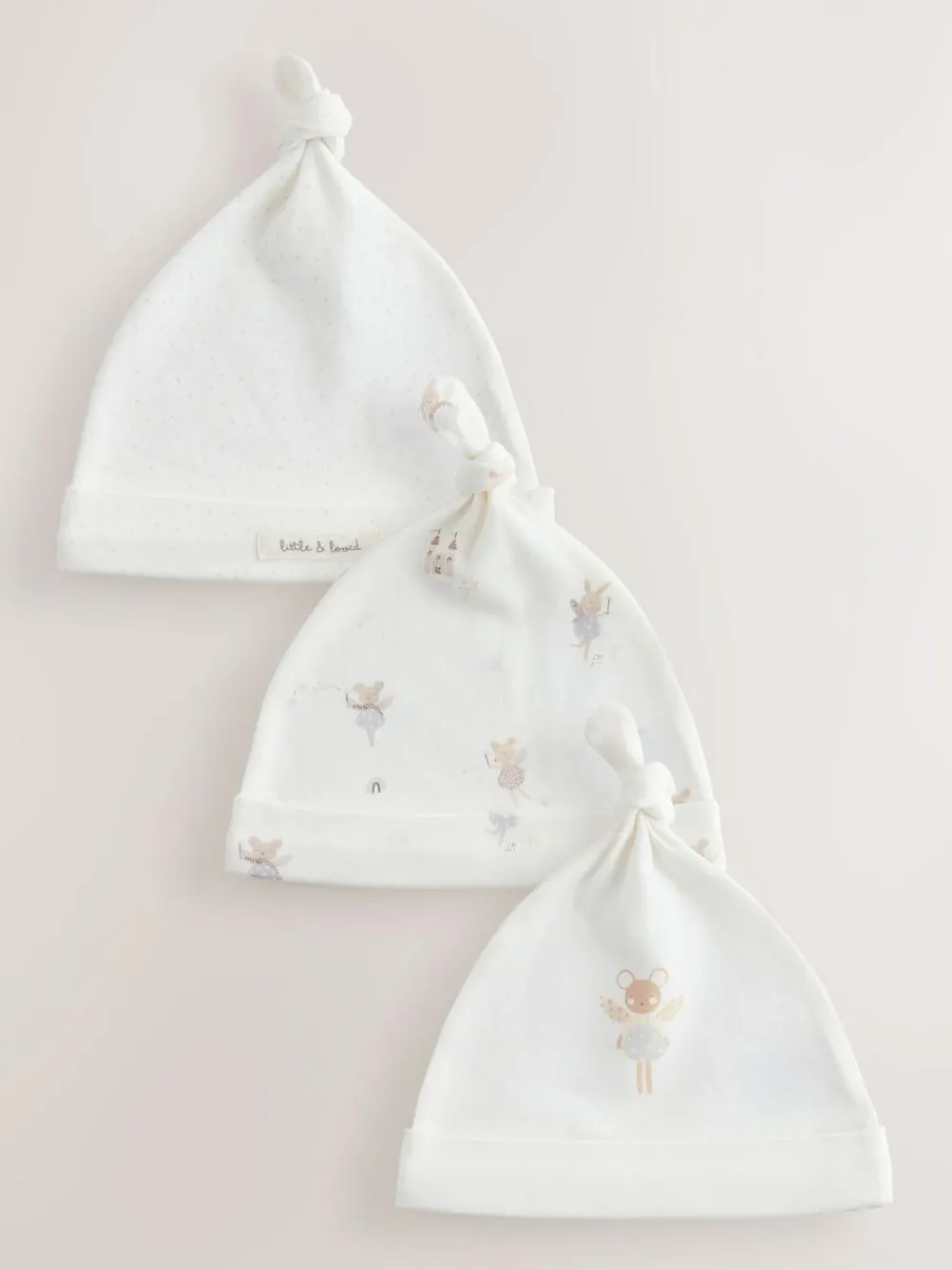 Hot Next Ecru Fairy Mouse 3 Pack Tie Top Baby Beanies (0mths-2yrs)