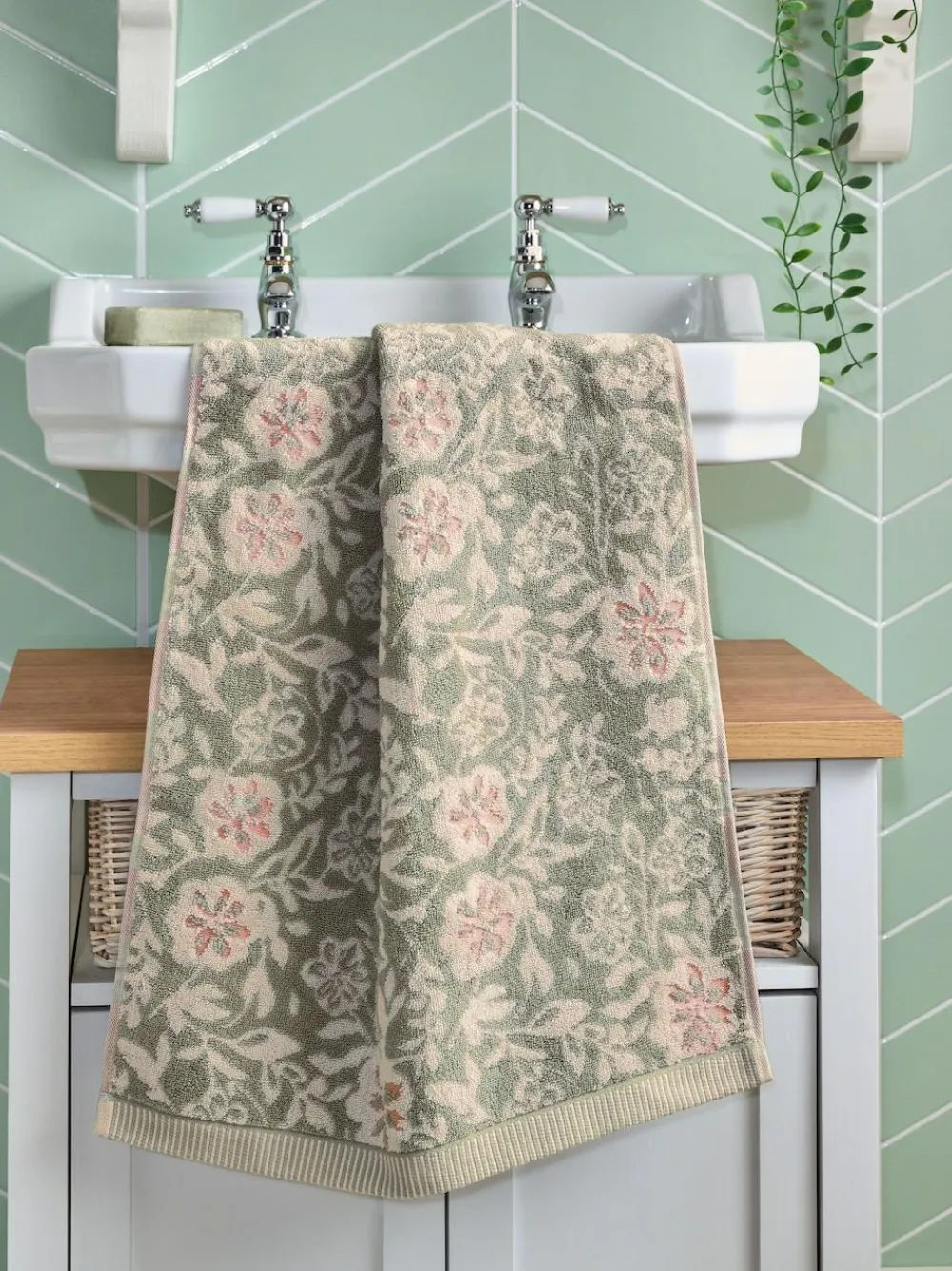 Hot Next Floral Print Towel Sage Green