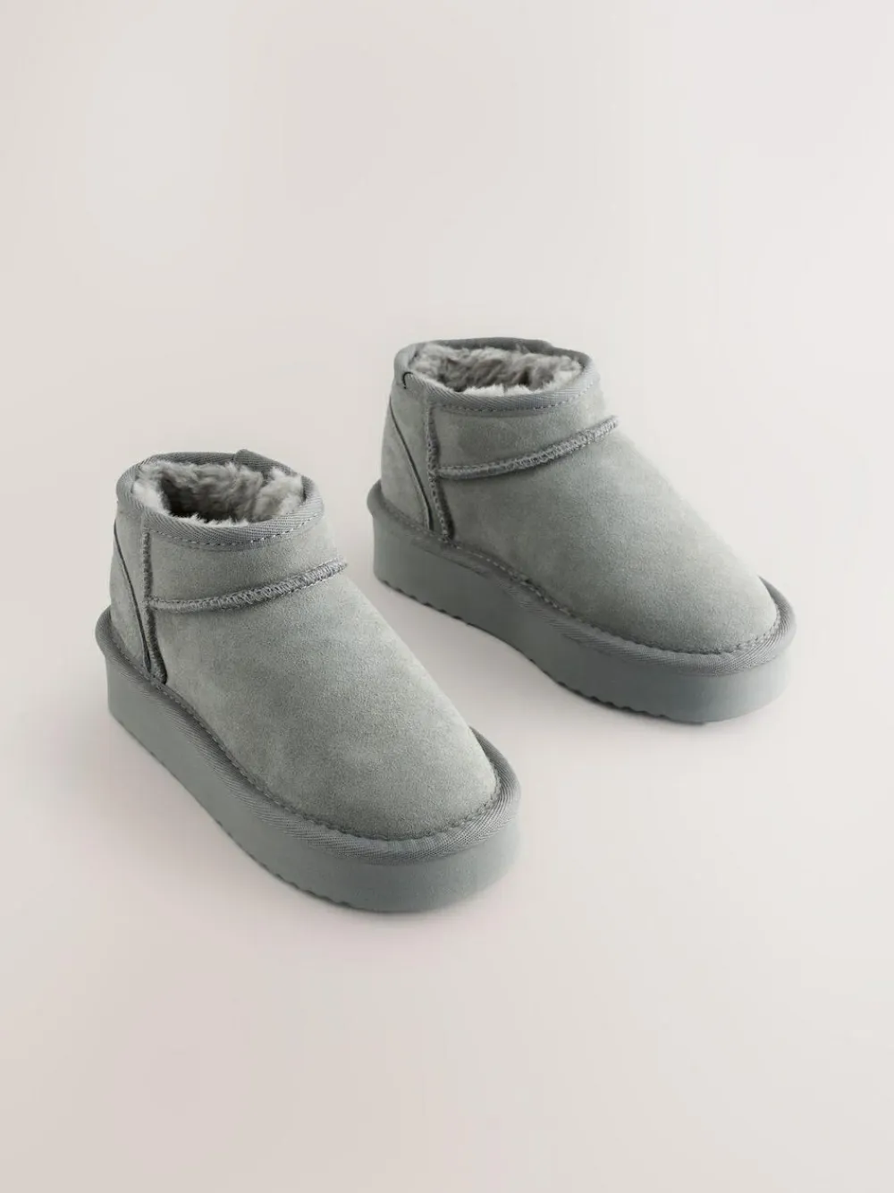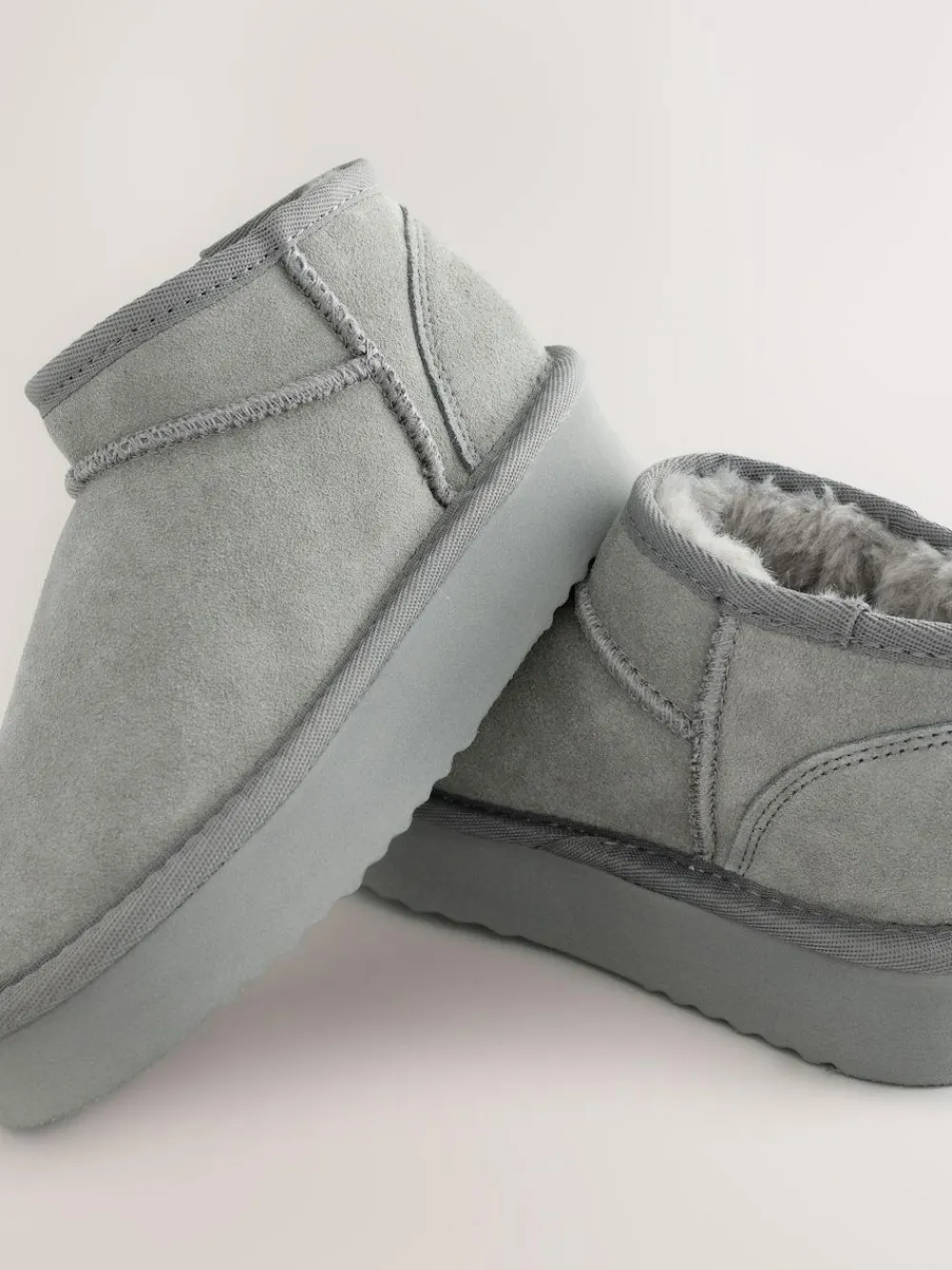 Hot Next Grey Standard Fit (F) Flatform Mini Warm Lined Water Repellent Suede Pull-On Boots