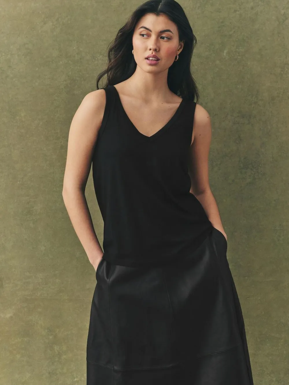 Our 3 pack of slouch V-neck vest tops is crafted from a soft handle cotton modal blend, creating a flattering drapey shape. The lined v-neck adds premium detailing to the overall look. Ultra soft and comfortable, this will be your new summer essential. 3 pack Cotton modal blend V-neckline Slouch fit Machine washable. 3 x Vest 50% Cotton, 50% TENCEL™ modal.