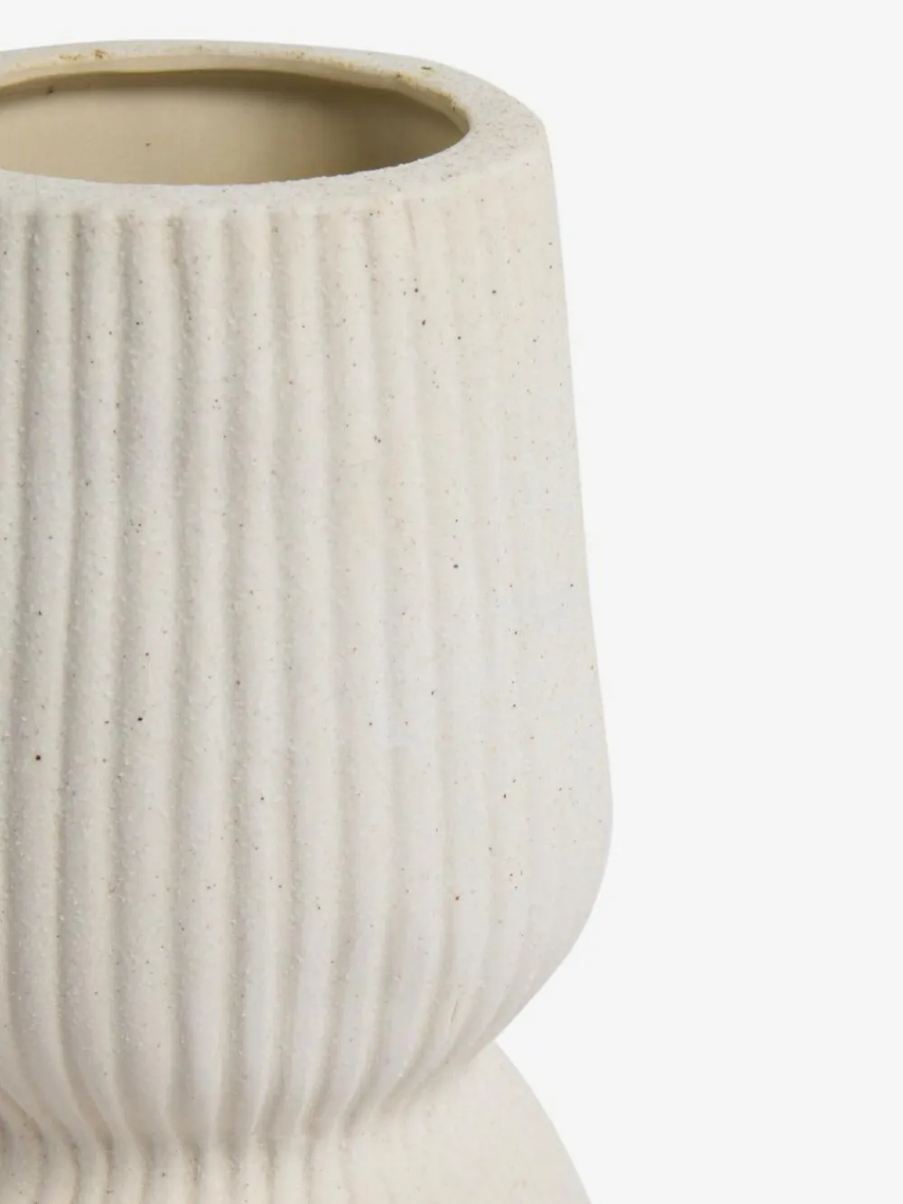 Organic in shape and texture, this medium vase brings an interesting scandi inspired shape and add levels of neutral colouring into a room. An ideal addition to a shelf, side table or window sill. Suitable for fresh and faux flowers. Coordinating items available. Height 28.5cm Width 10cm Depth 10cm Hand wash only. 100% Stoneware.
