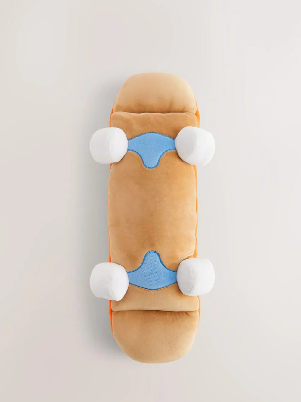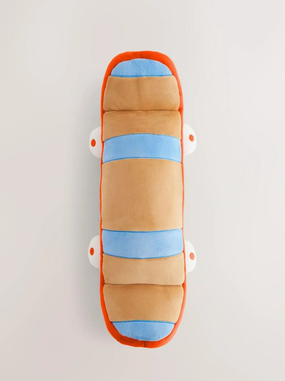Our squidgey skateboard cushion is supersoft and is the perfect addition to any bedroom. Approx dimensions 10x15x56cm Machine washable. Main 100% Recycled polyester. Filling 100% Recycled polyester. Polyester Filled.
