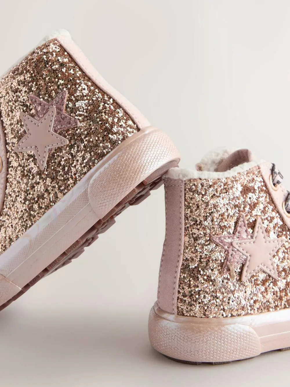 Make every step a sparkling one with these Star High Top Trainers. Perfect for a party or special occasion, these trainers feature an eye-catching design with glittery details and a star motif. For a different look, they come with two sets of laces. The slip-resistant and durable sole ensures a safe and steady stride, while the convenient inside zip makes them easy to put on and take off. Sold with 2 laces Slip resistant sole Inside zip Upper – Textile, Other Materials, Lining & Sock – Textile, Sole – Other Materials.