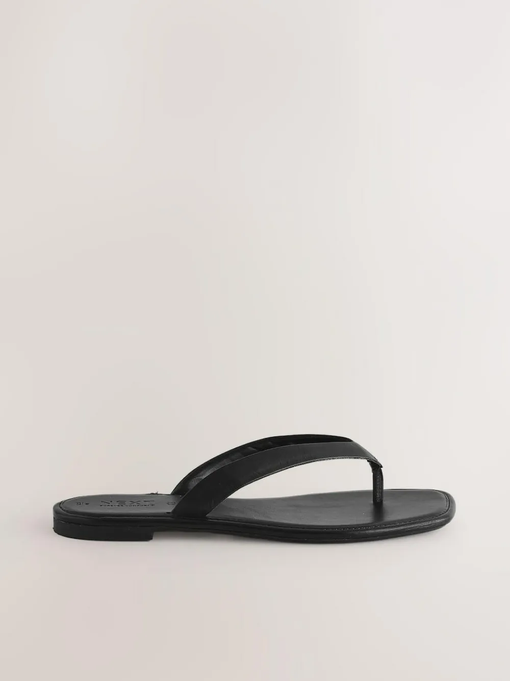 Hot Next Standard/Wide Fit Square Toe Thong Sandals Black Leather