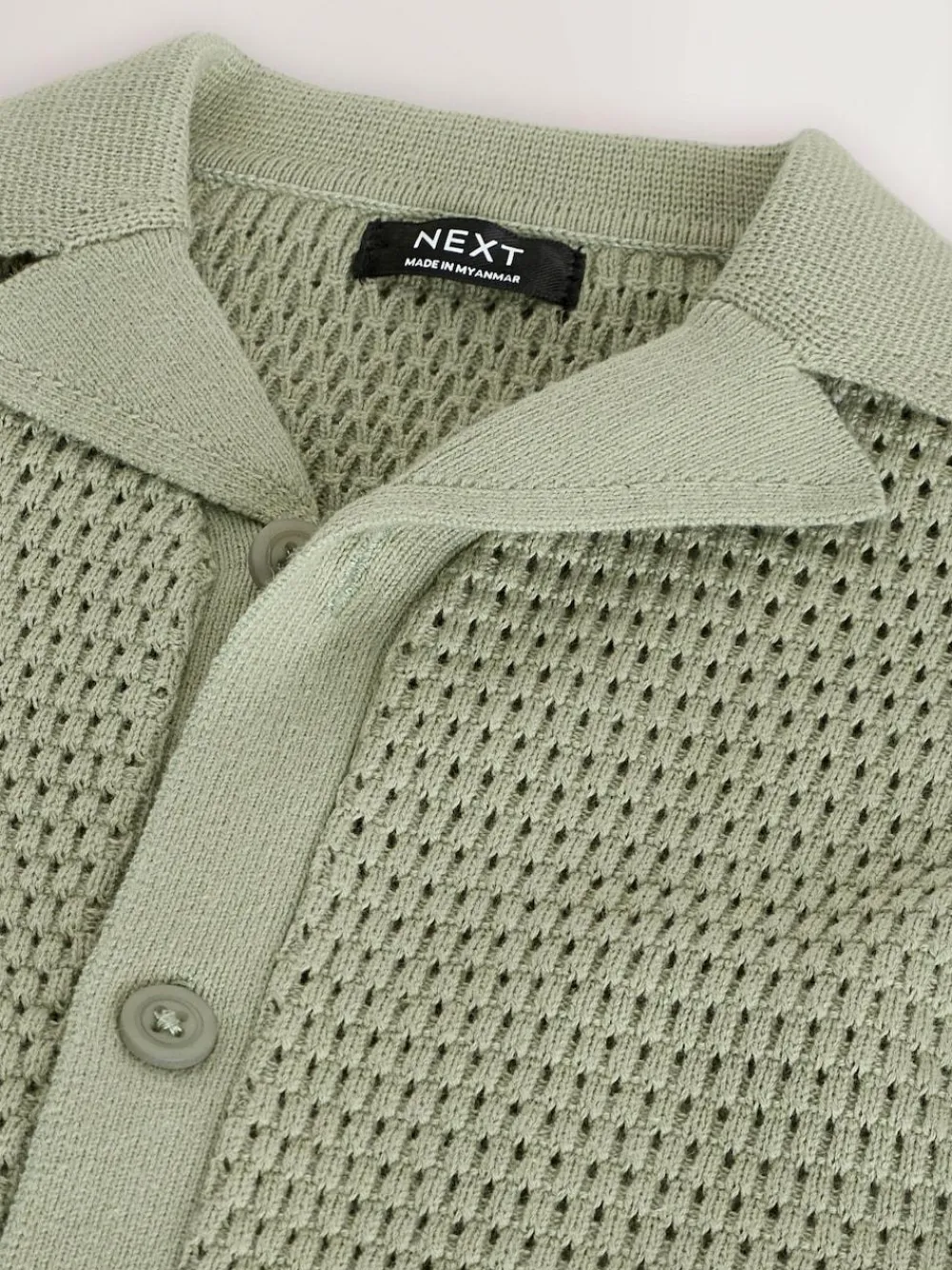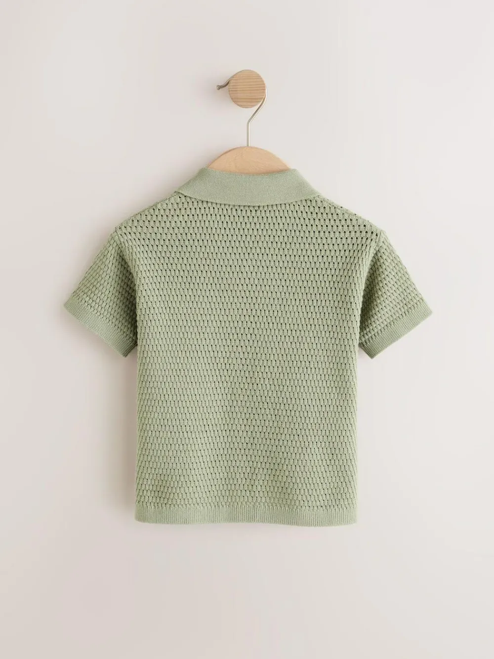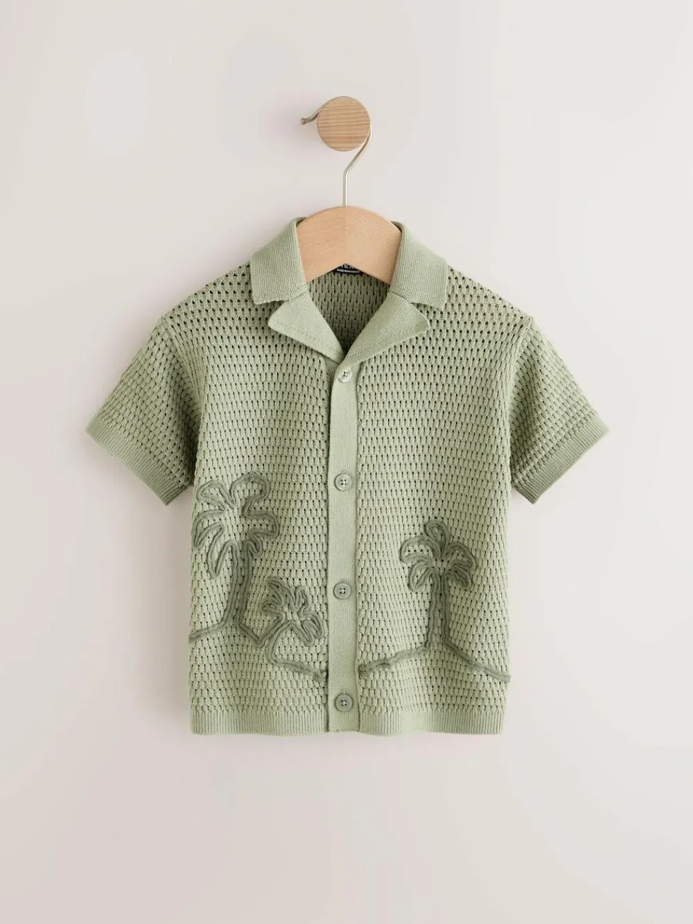 Hot Next Textured Revere Collar Short Sleeve Knitted Polo Shirt (3mths-7yrs) Green Palms