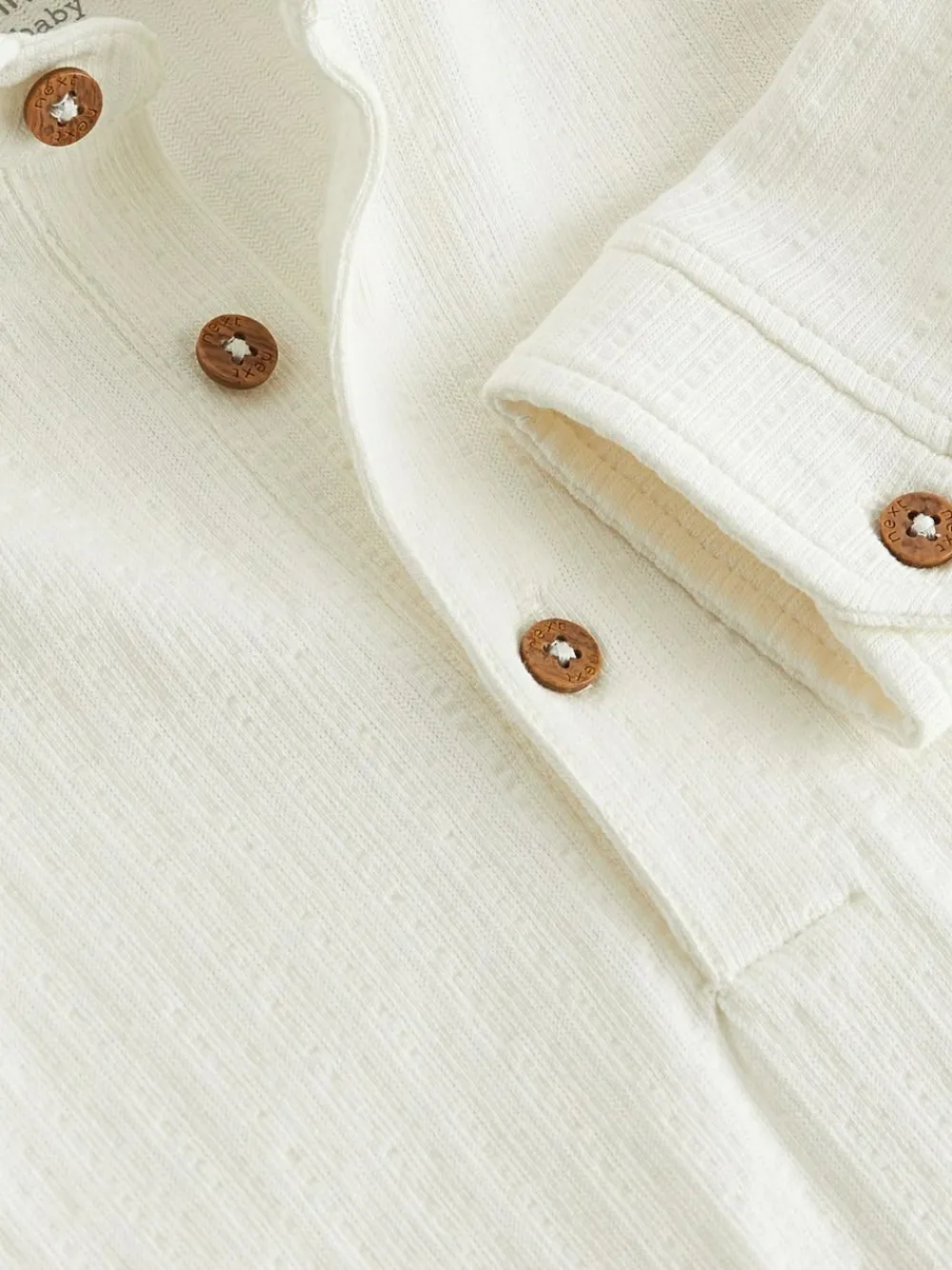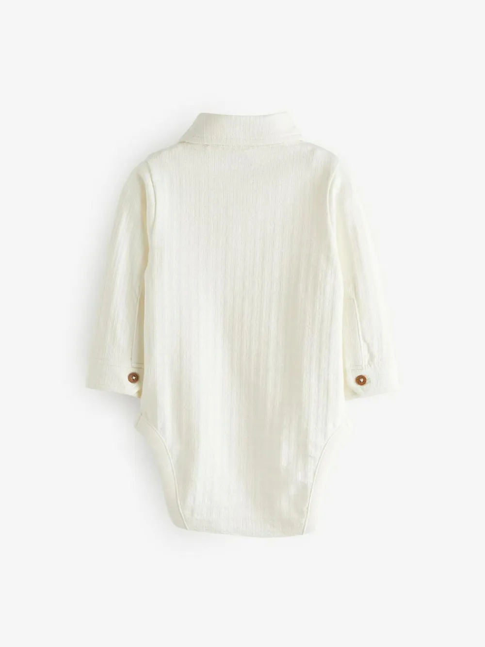 Keep your little angel warm and cosy in our White textured shirt bodysuit. Made from soft and breathable brushed cotton, this stylish bodysuit is designed in a shirt-inspired silhouette with long sleeves, a collar and applique detailing. Complete with nickel-free popper fastening for easy wear. Shirt style bodysuit Soft & cosy brushed cotton Button placket Long sleeves Nickel-free popper fastening between the legs Machine washable. 100% Cotton. Warning: Keep away from fire and flames.