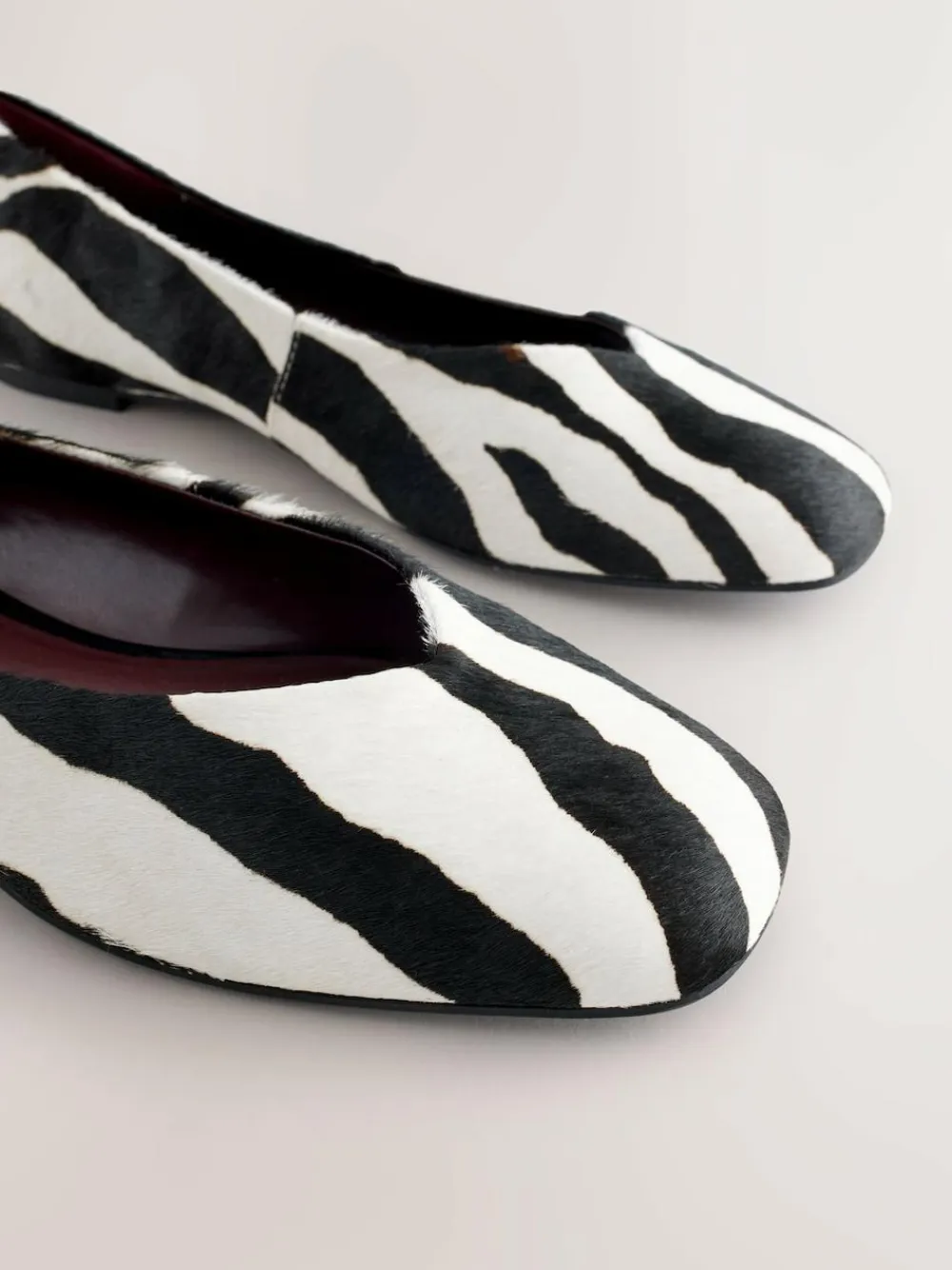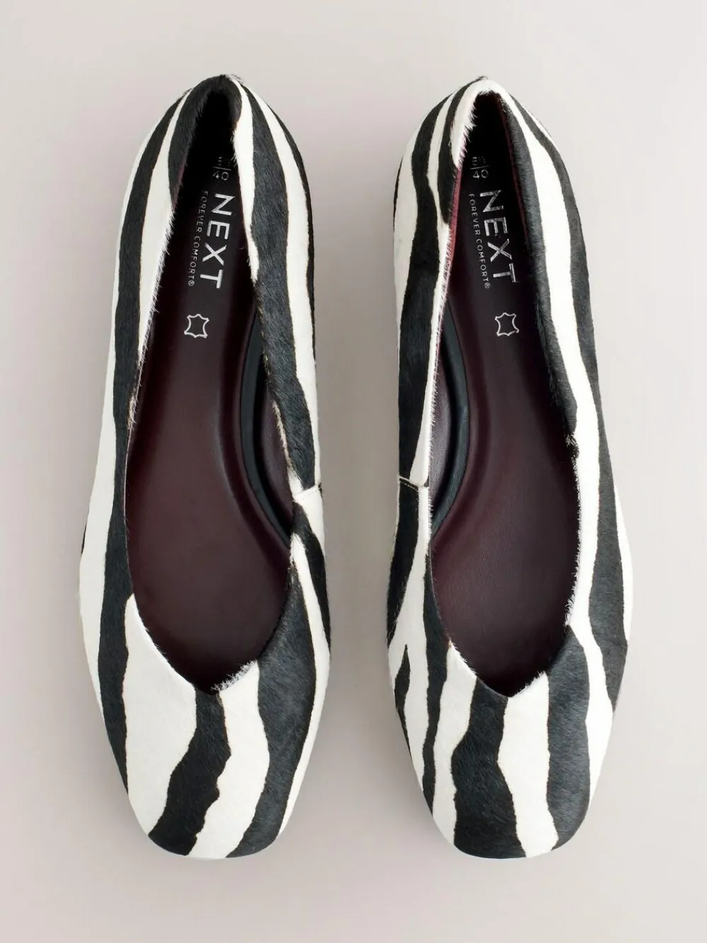 Make a bold style statement with these eye-catching zebra print ballet flats, a modern must-have for your footwear collection. Crafted from premium leather, they feature a contemporary squoval toe and a sophisticated high-cut silhouette. The integrated Forever Comfort® padding ensures all-day ease, allowing you to stay comfortable without compromising on style. High-cut ballet flat Squoval toe Leather construction Forever Comfort® technology Bold zebra print pattern Upper – Leather, Lining & Sock – Other Materials, Sole – Other Materials.