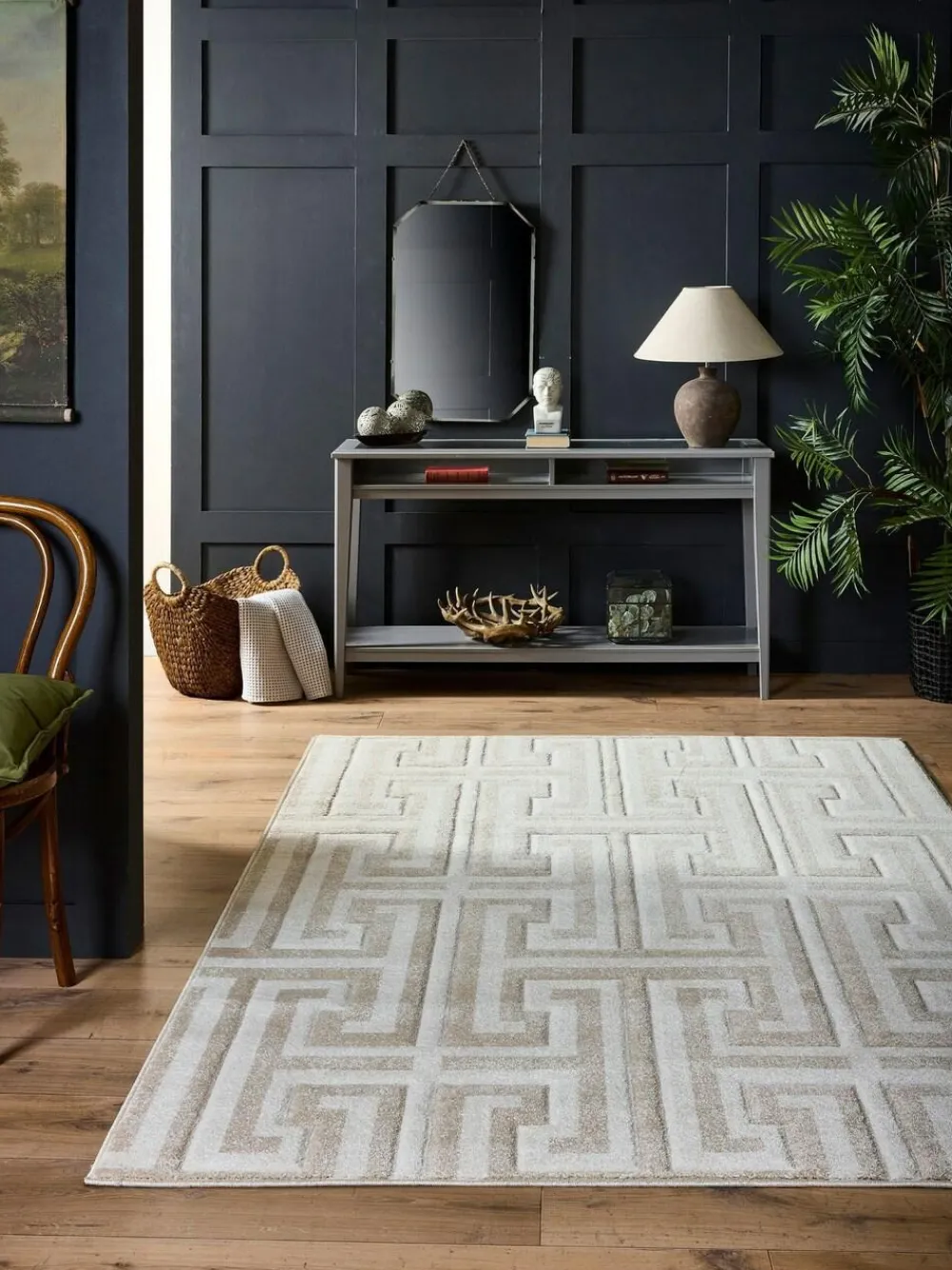 Perfect for adding a touch of elegance to your home, whilst still having the practicality of a hardwearing, and long-lasting rug. Our Greek Key Rug is made from 100% polypropylene, so it is soft underfoot, but also perfect for busy homes. Available in a range of colours and sizes . 80×150 cm Height 150cm / Width 80cm / Depth 1cm 120×170 cm Height 170cm / Width 120cm / Depth 1cm 160×230 cm Height 230cm / Width 160cm / Depth 1cm 200×290 cm Height 290cm / Width 200cm / Depth 1cm For top tips on finding the right rug for you, read our handy guide here Sponge clean only. 100% Polypropylene.
