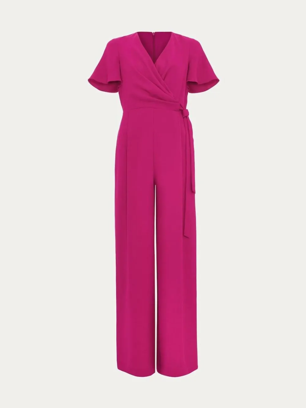 Say hello to the versatile look that works for any occasion. Made from a berry pink crepe fabric, our Julissa jumpsuit is designed in a faux wrap style, embellished with a bow detail at the waist. Flowing through to a wide leg silhouette we style it with ivory heels and a matching clutch. Machine washable. 100% Polyester.