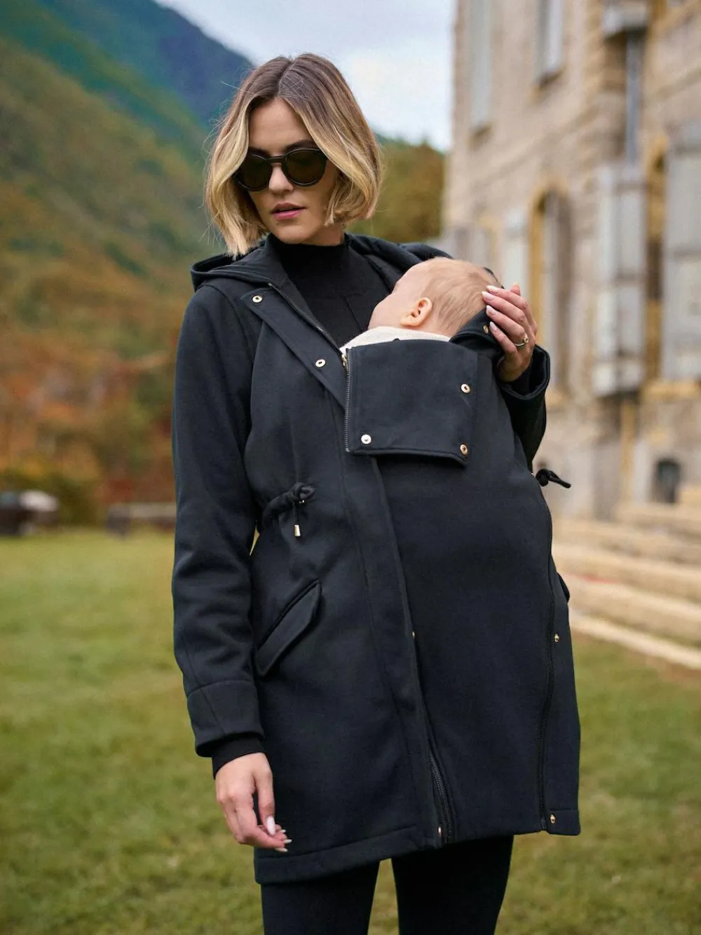 This babywearing hoodie-coat fuses active streetwear with maternity style, featuring a removable babywearing panel and butter-soft fleece-back jersey. With gold trims, a cinched waist and twisted seam detailing, it’s the ultimate blend of form, function and signature Seraphine style. • Zip-on kangaroo panel fits over a baby carrier or sling• Easy longline fit• Soft cosy fleece-back jerseyBuy your pre-pregnancy size. With over 20 years of maternity expertise, Seraphine styles are designed to grow with you, adapting with you through pregnancy and motherhood. Machine washable. 65% Polyester, 35% Cotton.