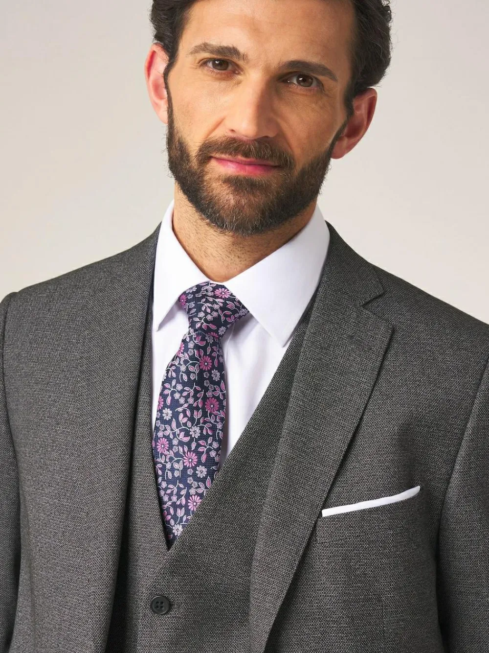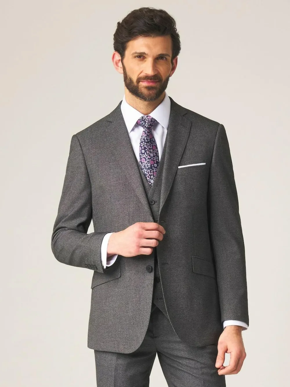 I’m Harcourt, a heritage-inspired tailored fit single-breasted suit jacket in a rich grey textured tweed effect fabric. I’m perfect for the office, wedding or any formal occasion! My features include distinctive grey buttons, straight flap pockets, a blue check inner lining and twin side vents. See my matching Skopes Harcourt Grey Tailored Fit Suit Trousers and Skopes Harcourt Grey Single Breasted Suit Waistcoat to complete the look Dry clean only. 82% Polyester, 18% Viscose.