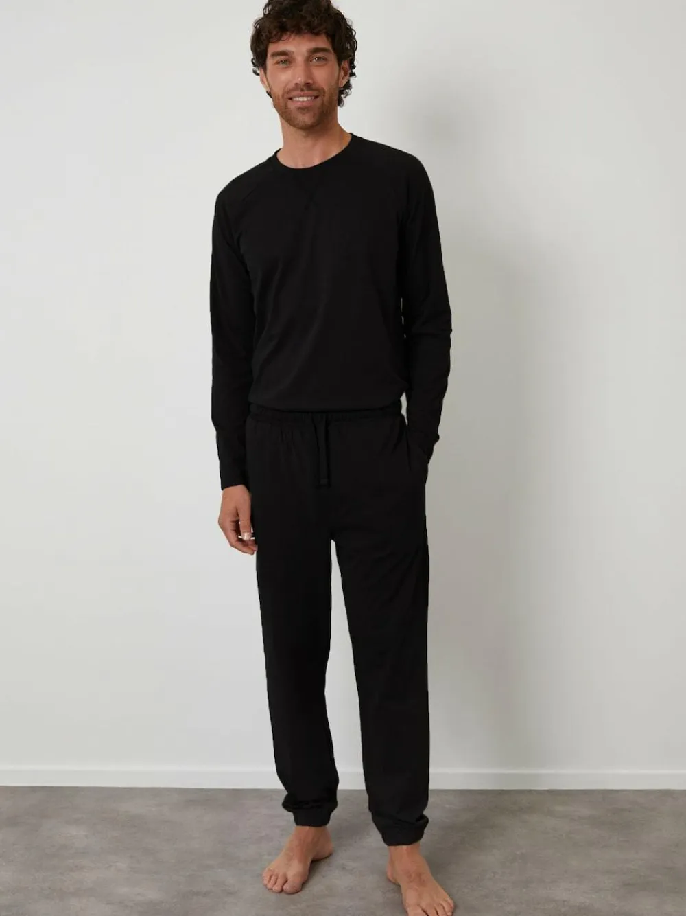 Hot Threadbare Peached Cotton Long Lounge Set Black