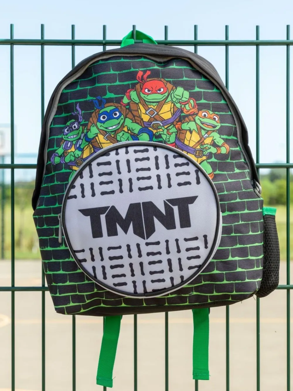 Get your little one ready for action with this Teenage Mutant Ninja Turtles backpack! Featuring a cool sewer grate front pocket, it’s perfect for any young fan of the turtles. Height 33cm Width 23cm Depth 4cm 100% Polyester.